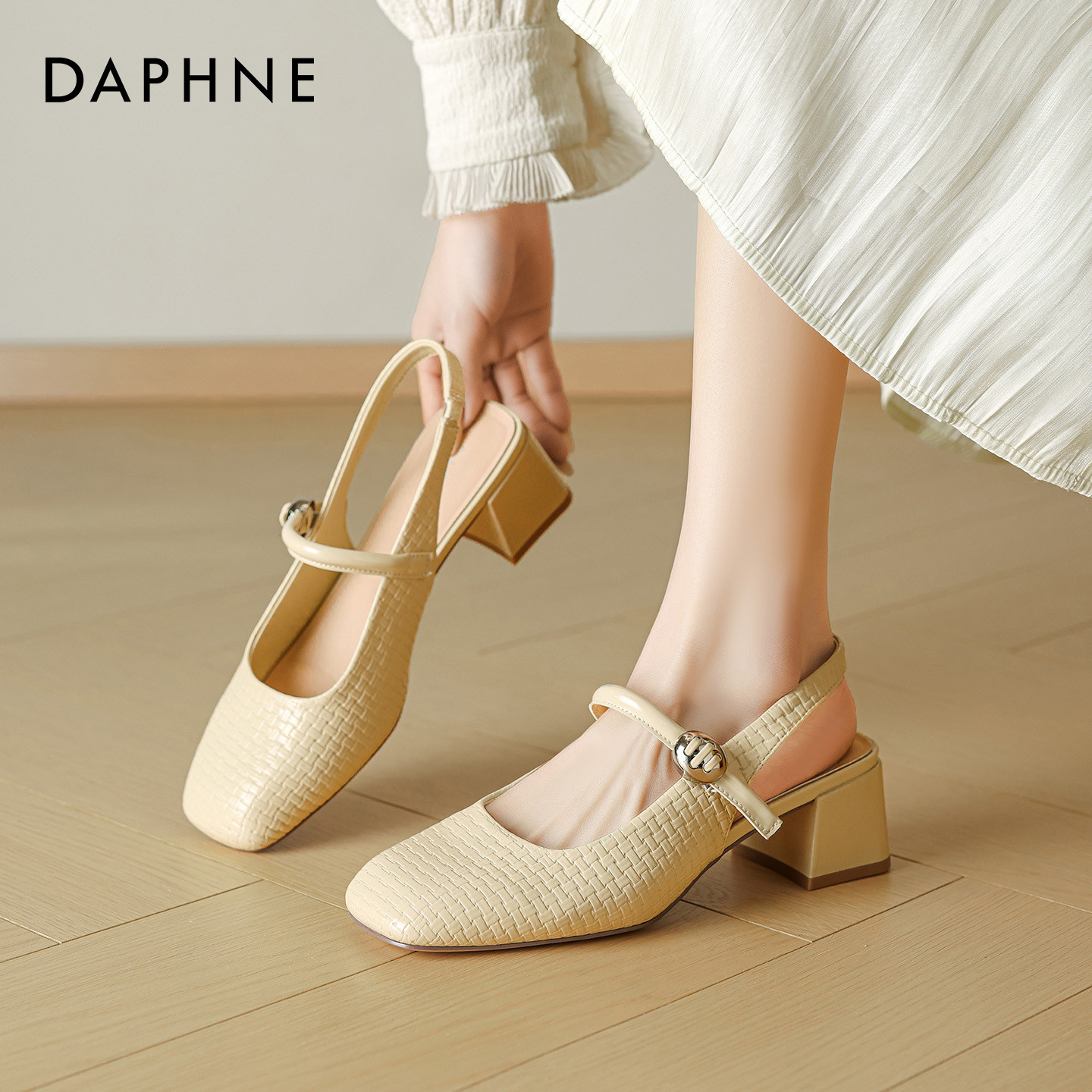 达芙妮高跟凉鞋女2026新款夏季粗跟不累脚绝美小香风法式玛丽珍鞋