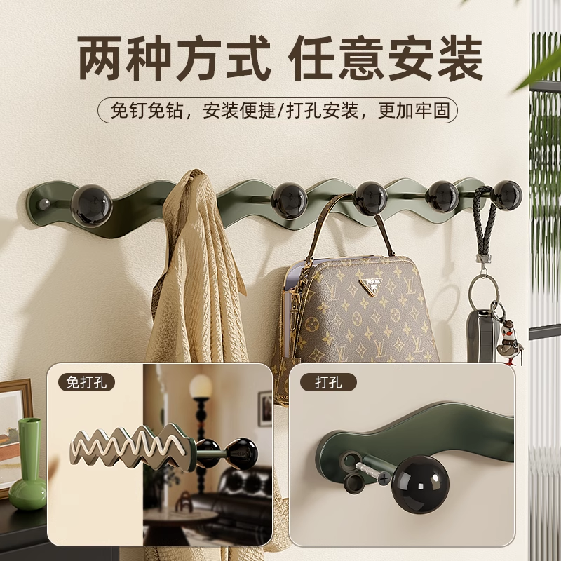 玄关进门挂钩挂衣钩挂衣架墙上壁挂卧室免打孔入户门后钥匙包包架
