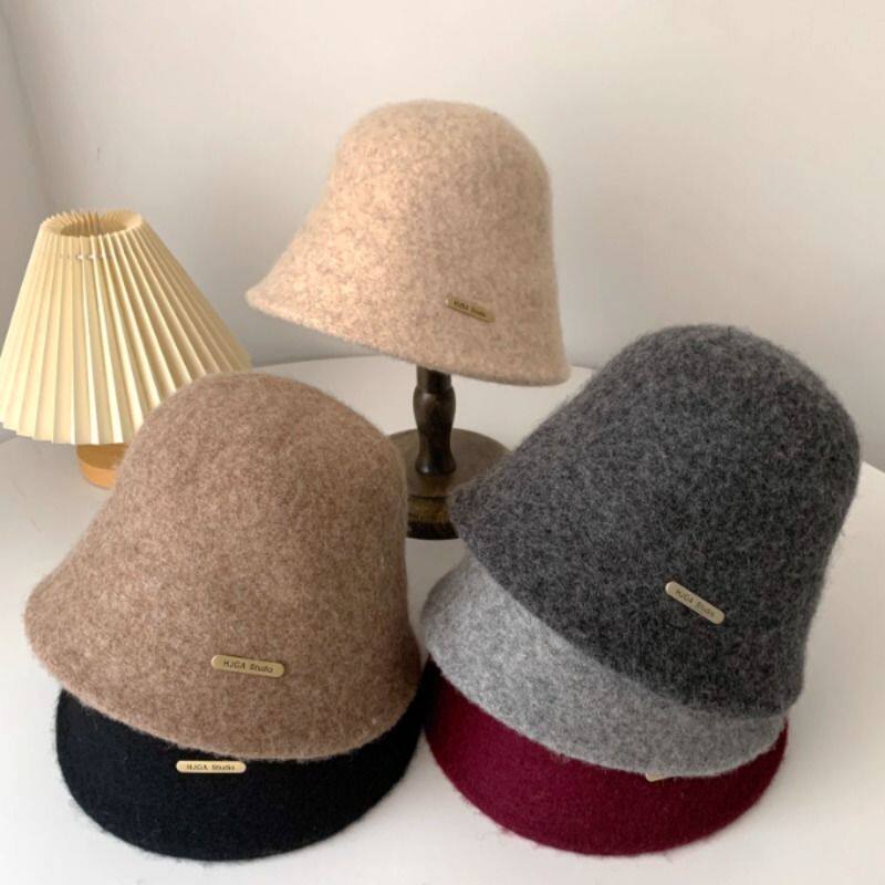 日系羊毛呢渔夫帽子女秋冬新款韩版百搭素颜遮脸水桶帽显脸小盆帽