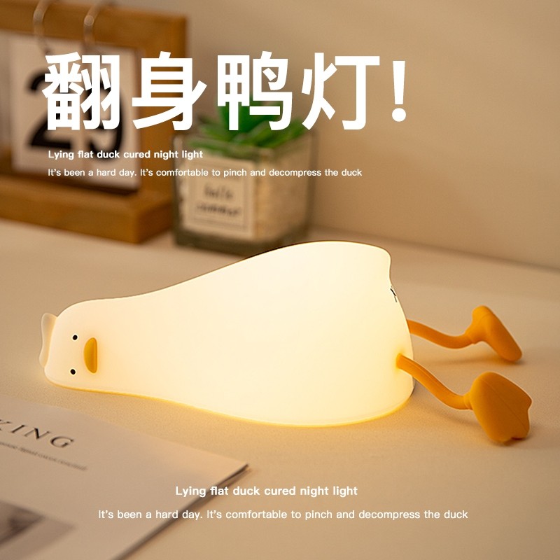 躺平鸭硅胶小夜灯卧室床头氛围睡眠儿童婴儿喂奶男女生日礼物台灯