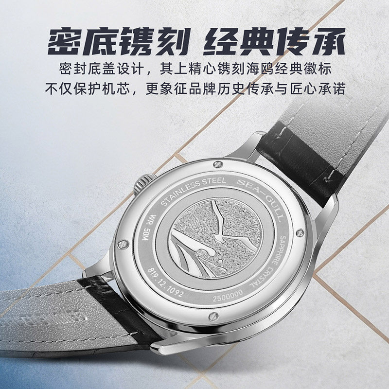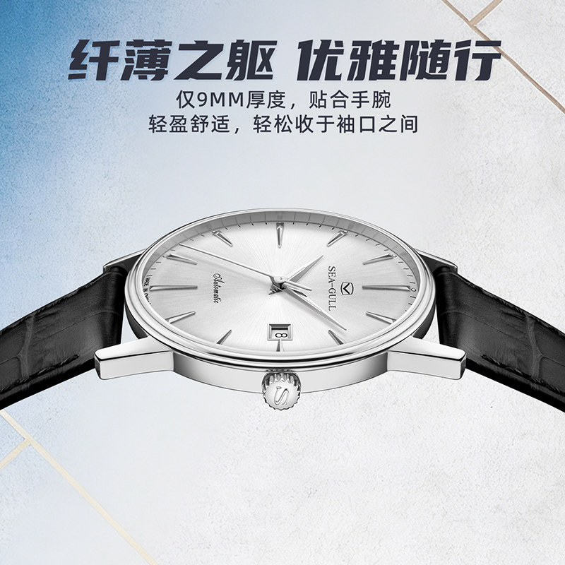 新品海鸥表自动机械表经典款纤薄商务男女款情侣腕表皮带手表1092