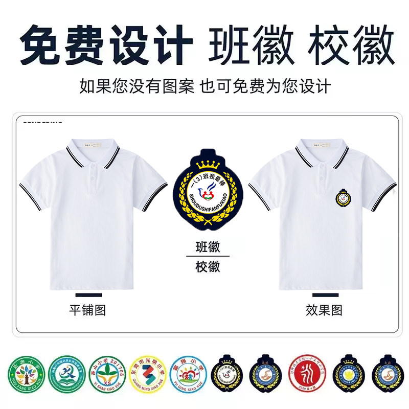 儿童校服短袖POLO衫小学生夏季透气薄款翻领T恤蓝白色初中生班服