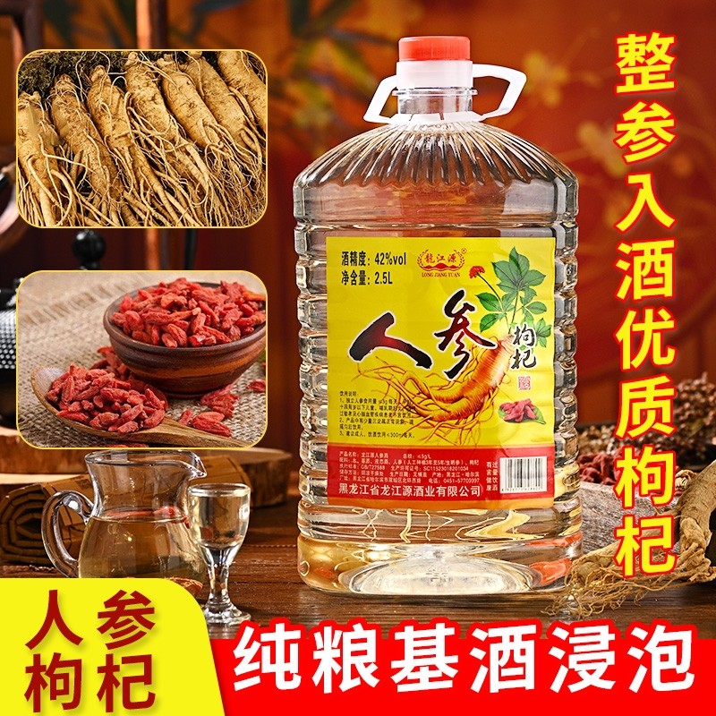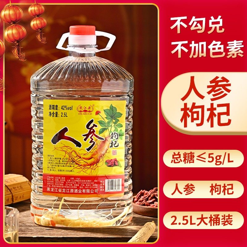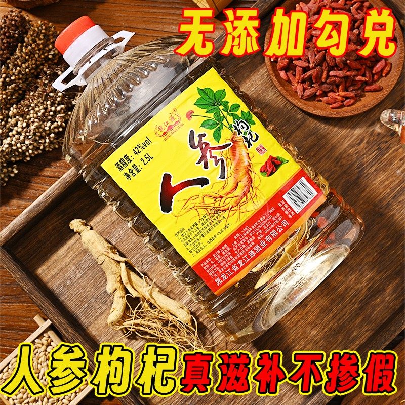 养生人参酒枸杞酒龙江源人参酒42度超大桶2.5L装纯粮食酒泡制