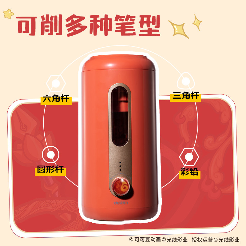 得力哪吒大口径全自动削笔机卷笔刀电动削笔机小学生专用铅笔刨洞洞笔转笔刀铅笔刀削器幼儿园男女孩儿童充电