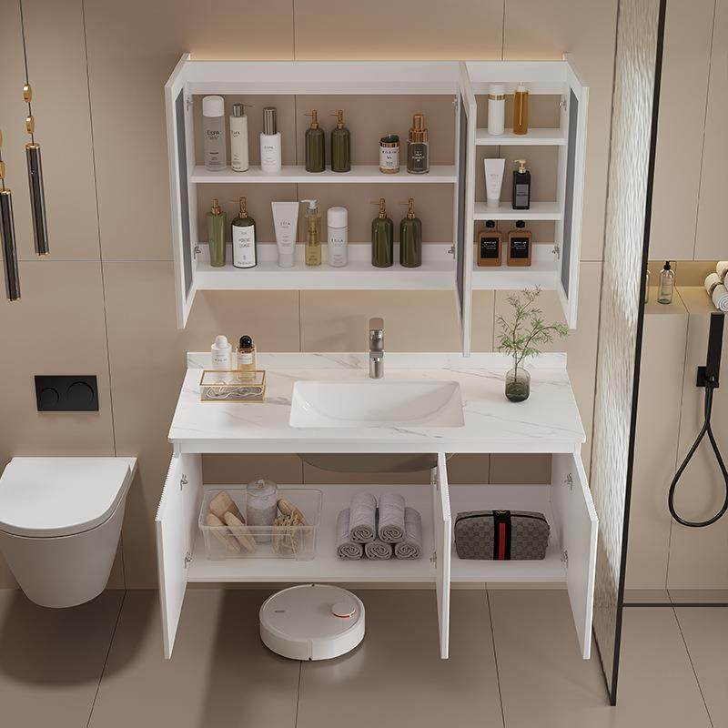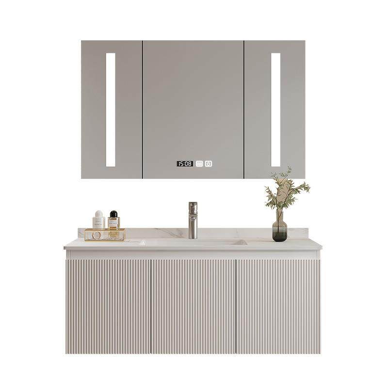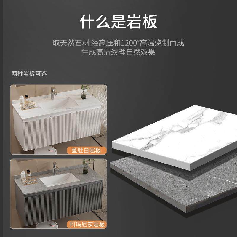 实木浴室柜组合岩板台面格栅烤漆门板智能镜柜卫生间洗漱台8801