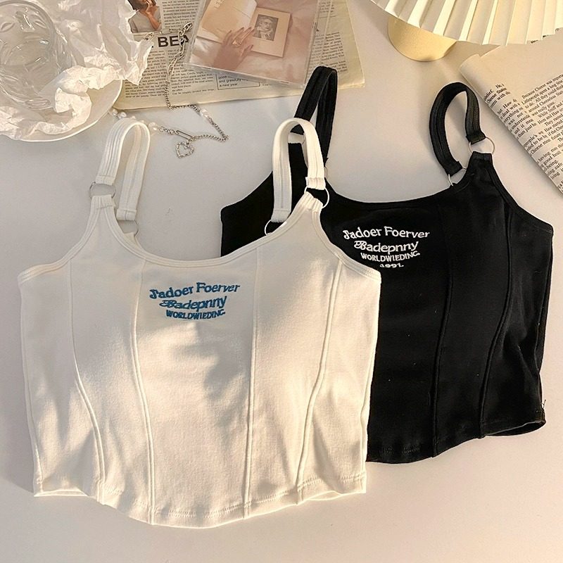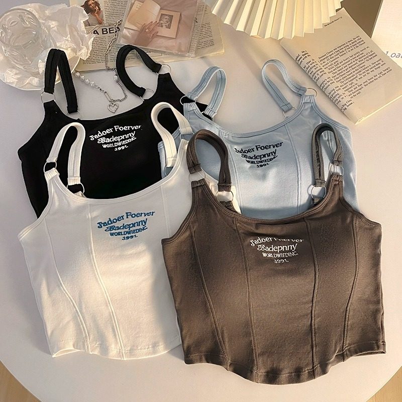 辣妹美式背心吊带内搭女夏外穿设计感小众短款上衣带胸垫印花自带