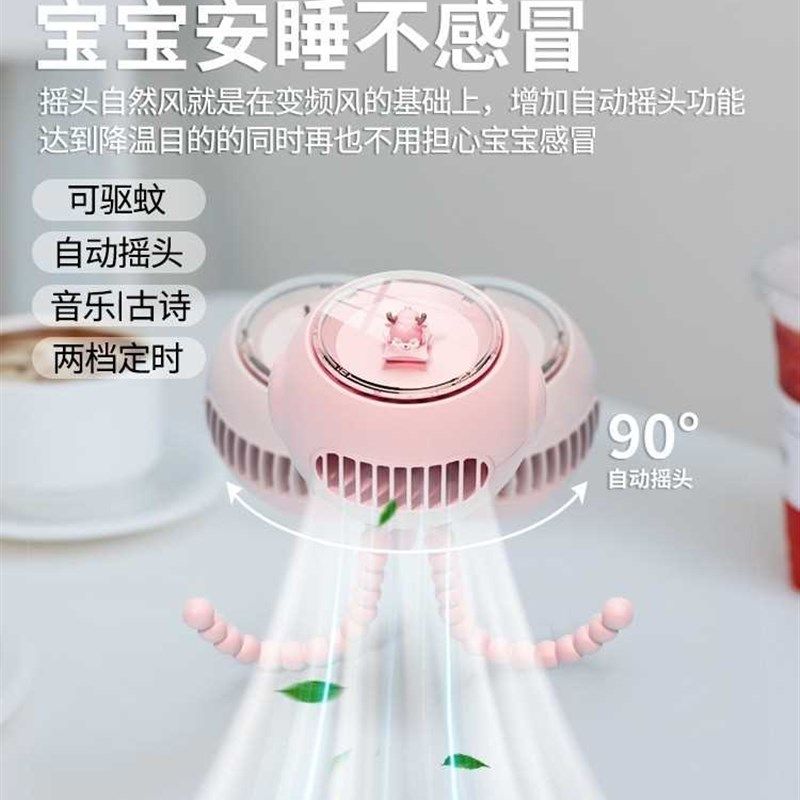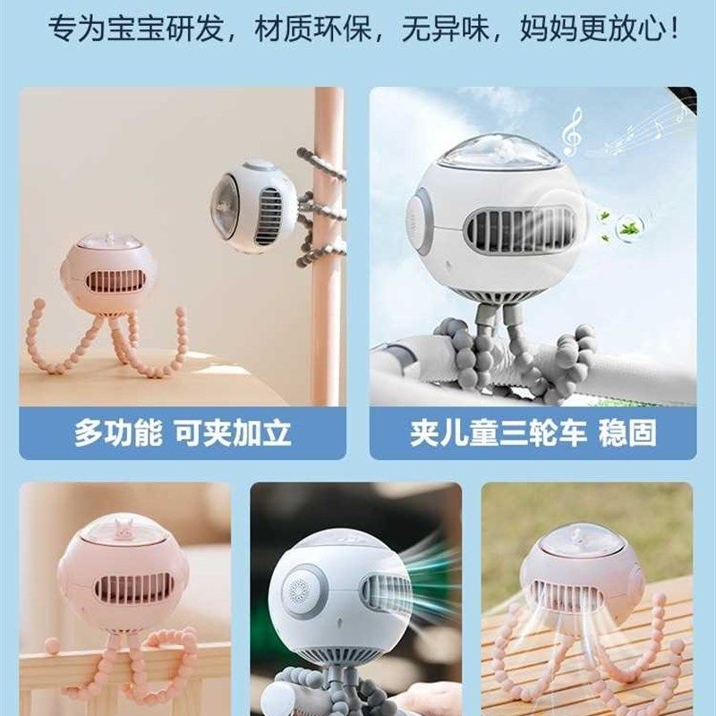婴儿车风扇八爪鱼宝宝手推车可携式静音迷你小型遛娃神器床上夹式