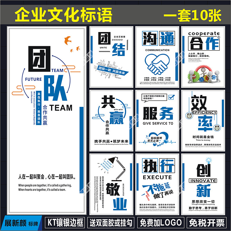 公司员工励志海报企业文化标语 会议室展板标识牌 办公室团队挂图