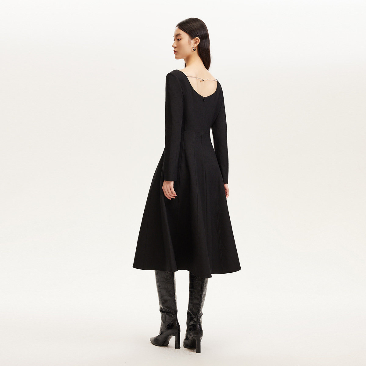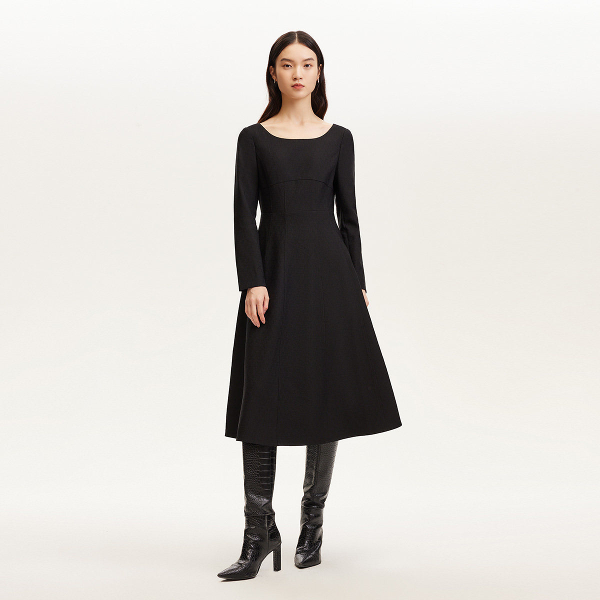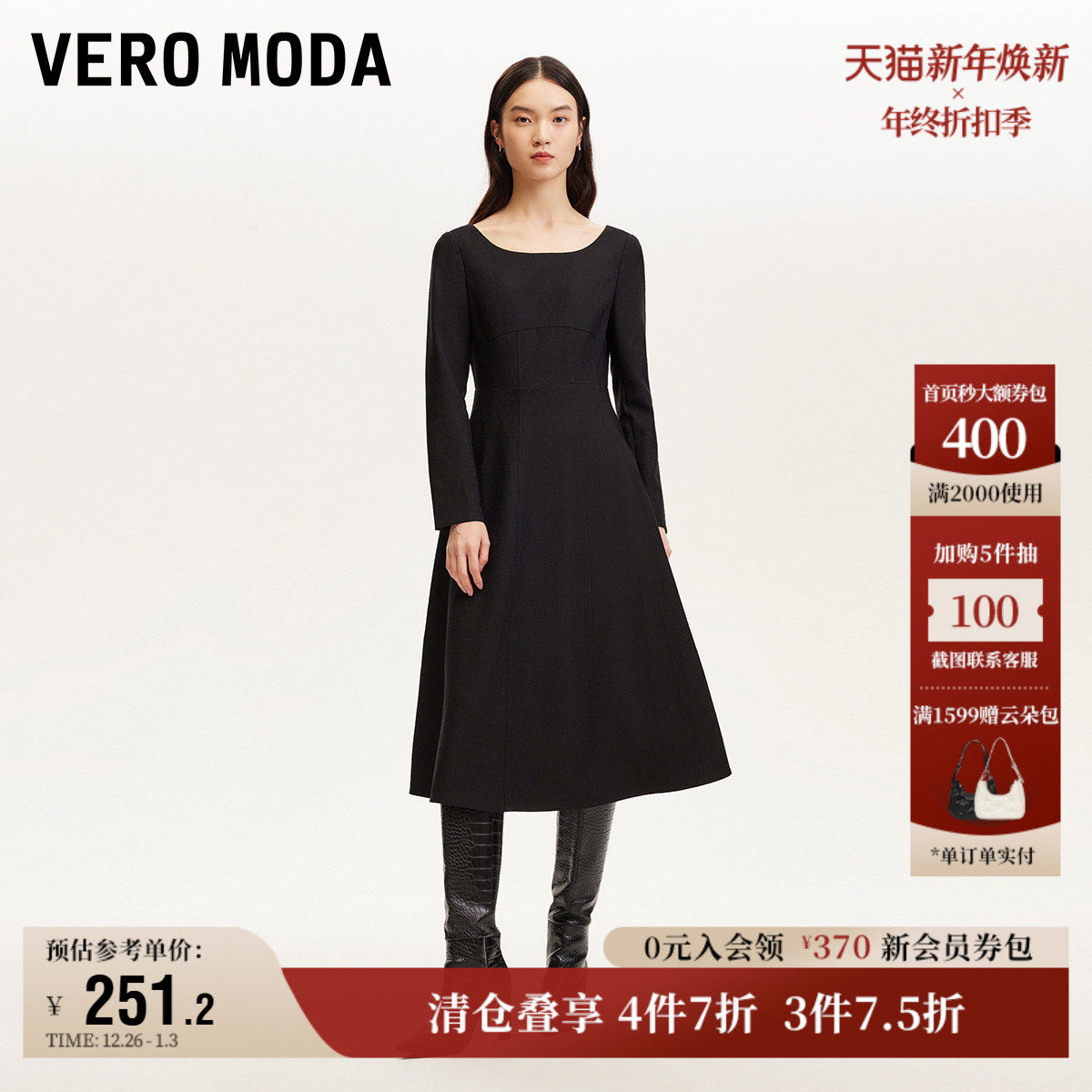 Vero Moda奥莱连衣裙秋冬新款收腰圆领赫本风气质优雅长裙子流行