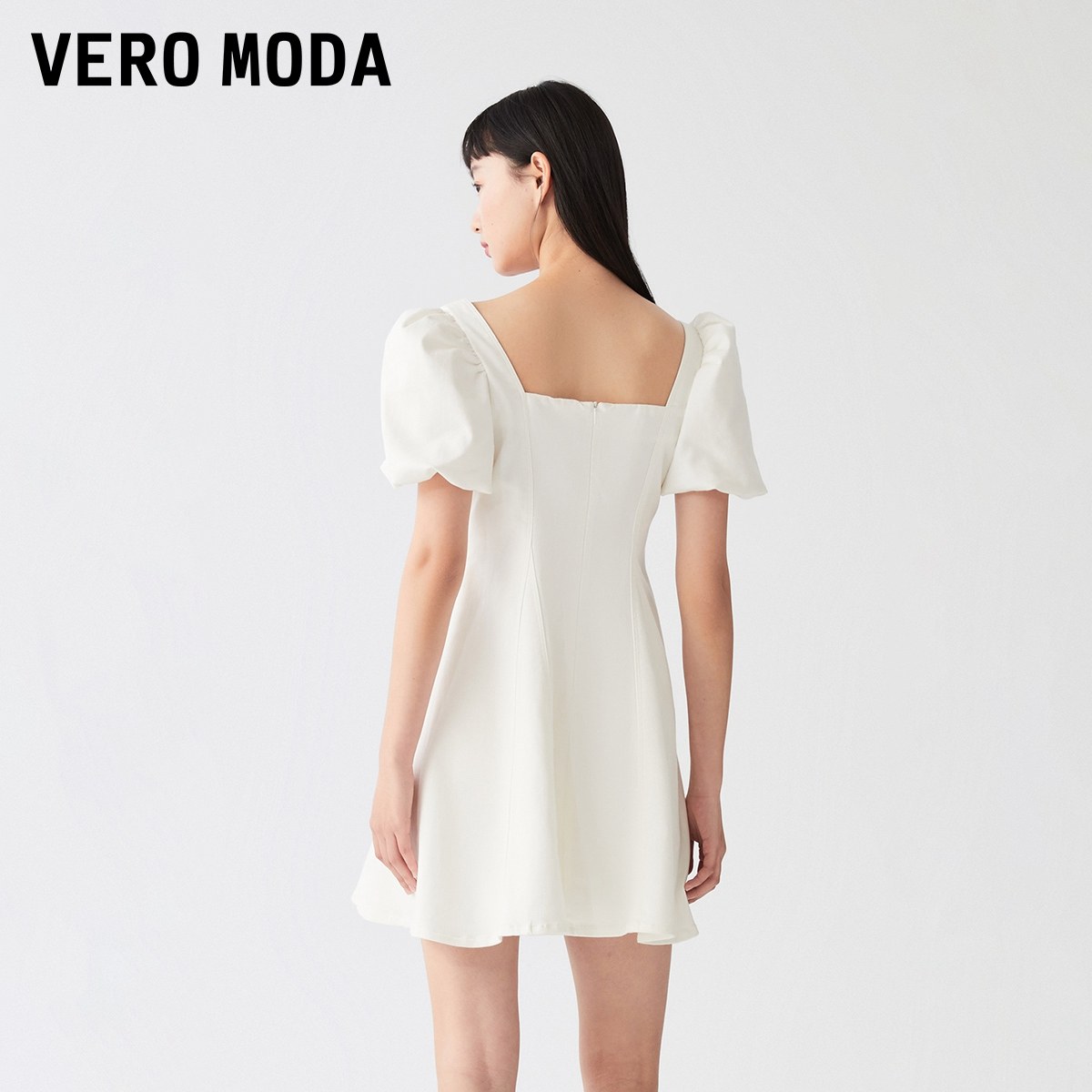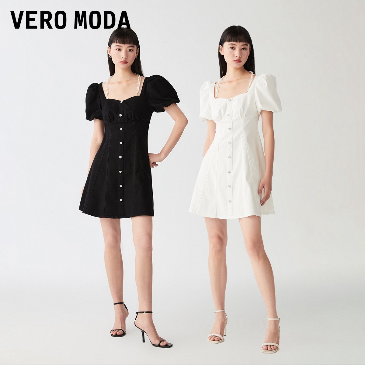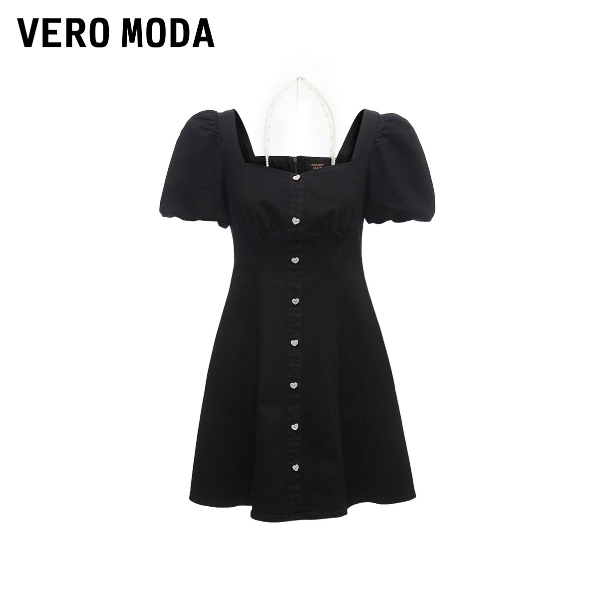 Vero Moda奥莱连衣裙子夏季清仓优雅方领泡泡袖收腰A字裙牛仔裙女
