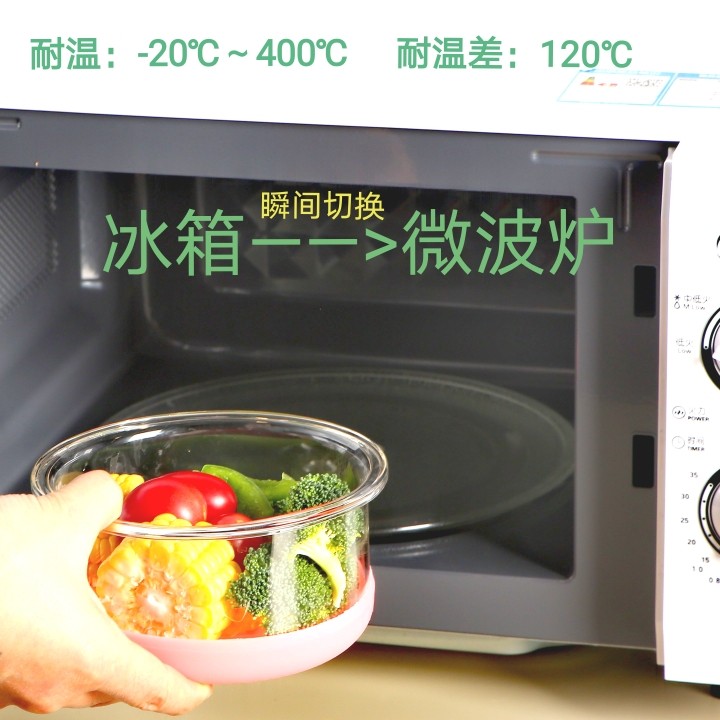 康宁玻璃保鲜盒食品级冰箱专用可微波炉加热玻璃碗耐高温便当饭盒