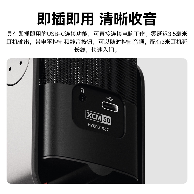 RODE罗德XCM-50麦克风USB话筒手机电脑直播录音配音K歌电容收音麦