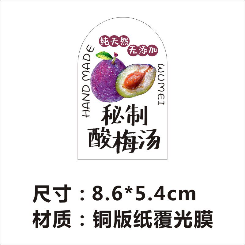 纯手工酸梅汤贴纸~老北京酸梅汤~秘制酸梅汁不干胶 方形圆形标签f