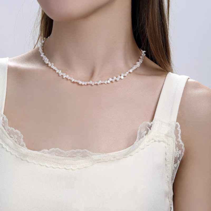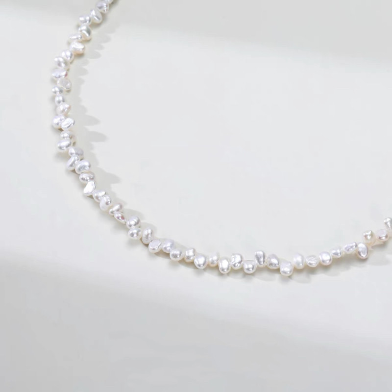诸暨淡水珍珠项链女S925银碎银子异形锁骨链轻奢高级感教师节礼物