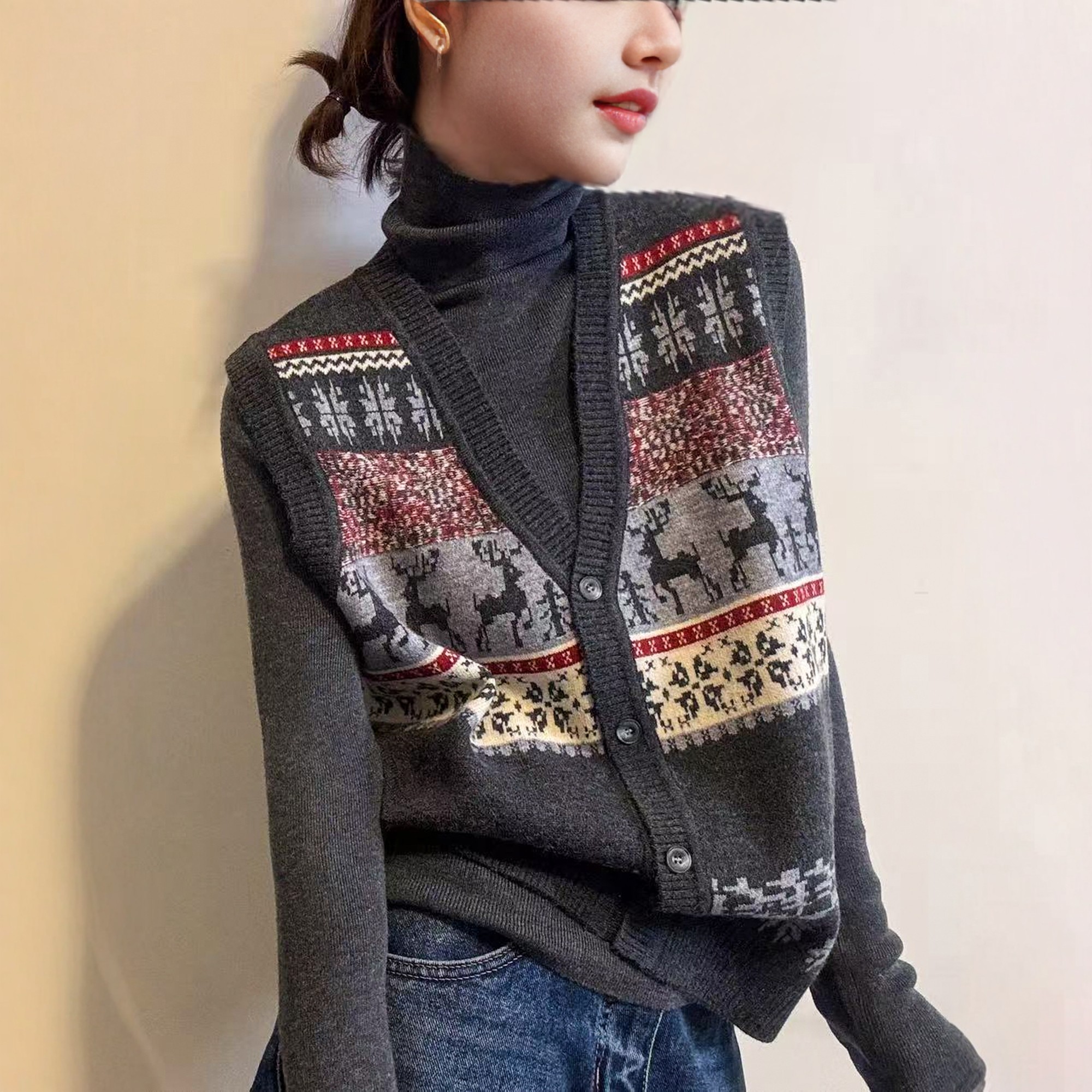费尔岛提花羊毛针织马甲两件套装女欧洲站2025冬装新款欧货女装潮