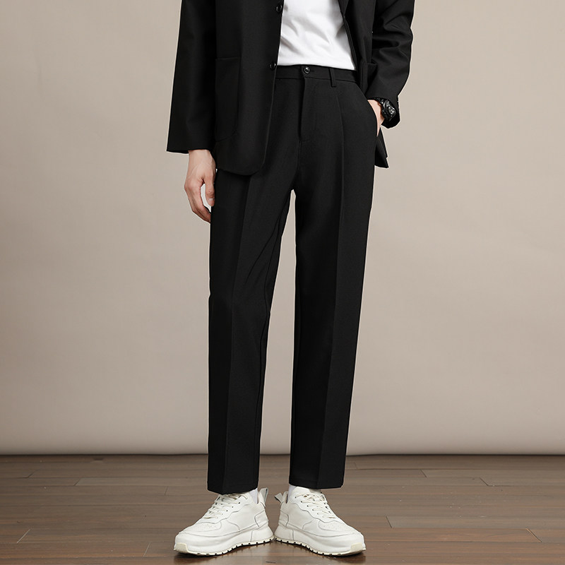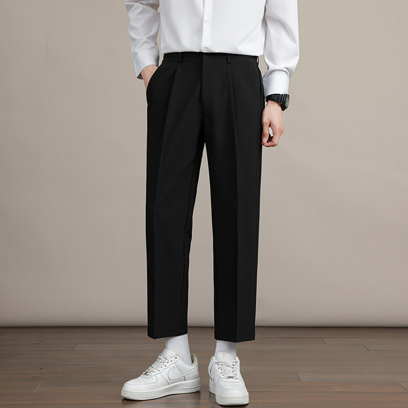 小西裤男士秋冬季加绒垂坠感直筒宽松休闲裤大码阔腿九分西装裤子