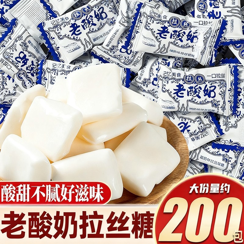老酸奶拉丝糖软糖牛奶糖酸奶糖8090后怀旧糖果儿童网红糖果零食