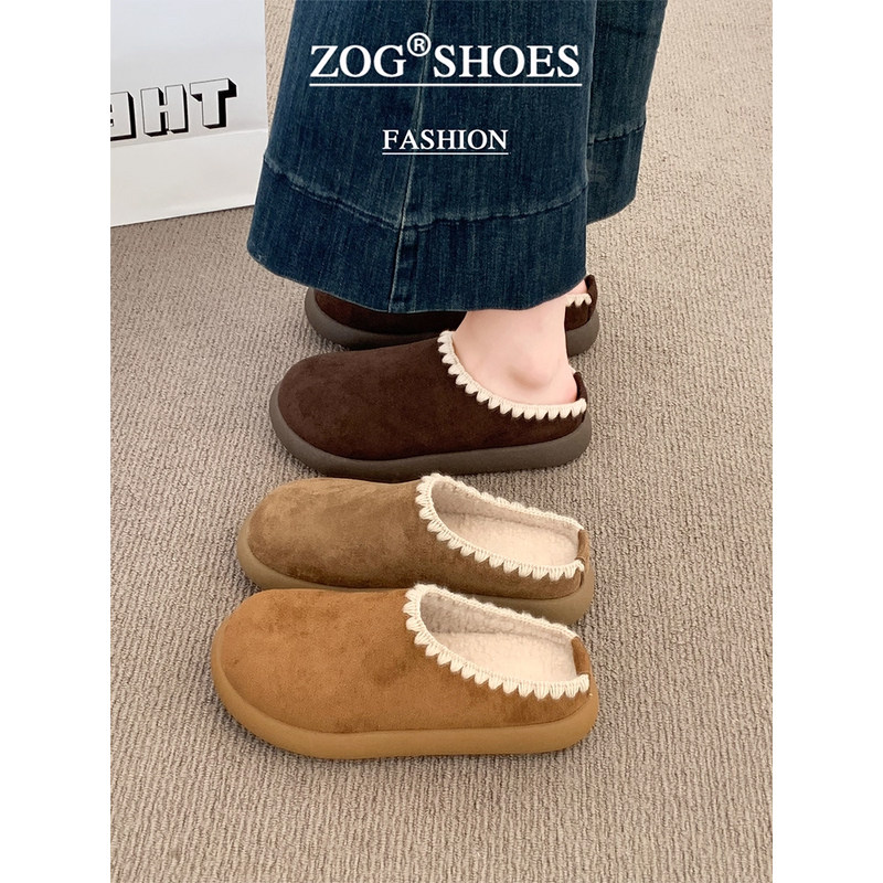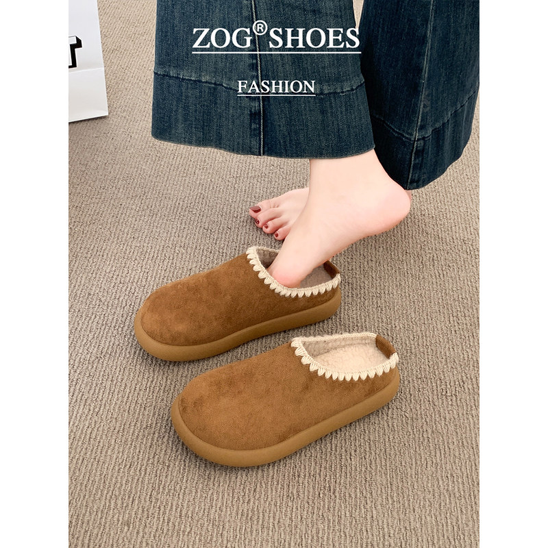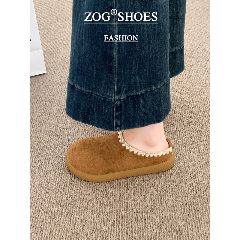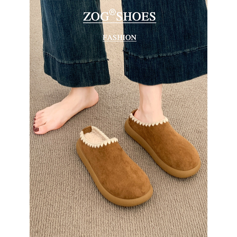 周雨彤同款厚底勃肯鞋女2025新款冬季加绒半拖鞋外穿增高穆勒鞋子