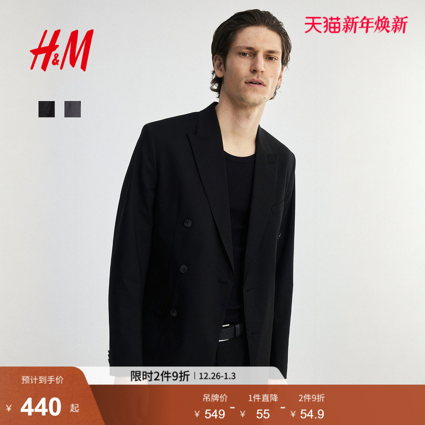 HM男装西服2025年冬季新款标准版型双排扣西装上衣1261757