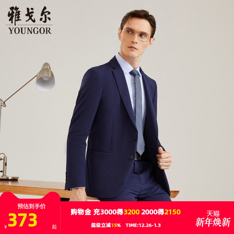 雅戈尔男士西服秋季新款官方商务休闲弹力修身伴郎黑西装外套1911