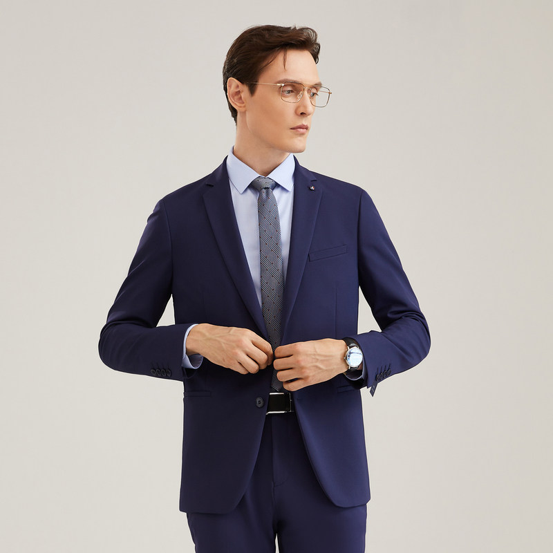2022领创宝马4S店同款男士西服修身男西装工作服装蓝色免烫职业装