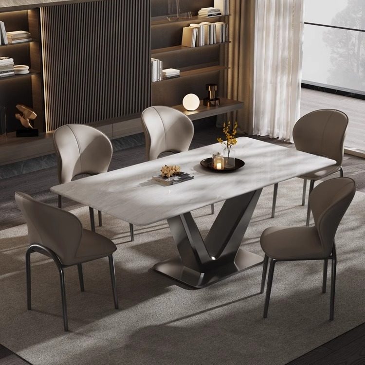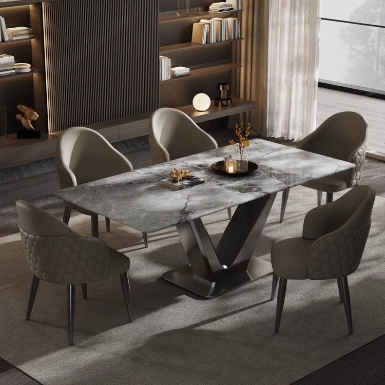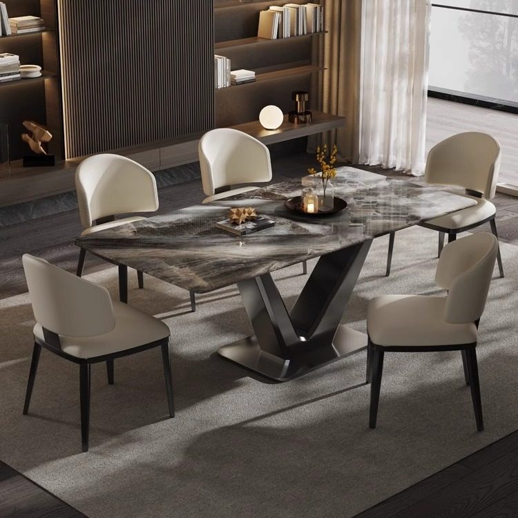 北欧天然大理石圆餐桌餐椅家用奢石彩晶石长方形餐桌天然奢石餐桌