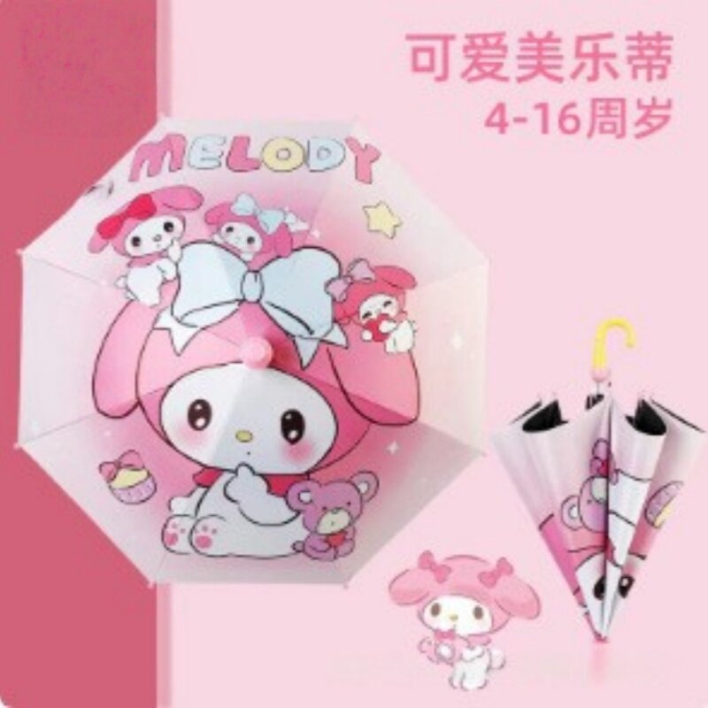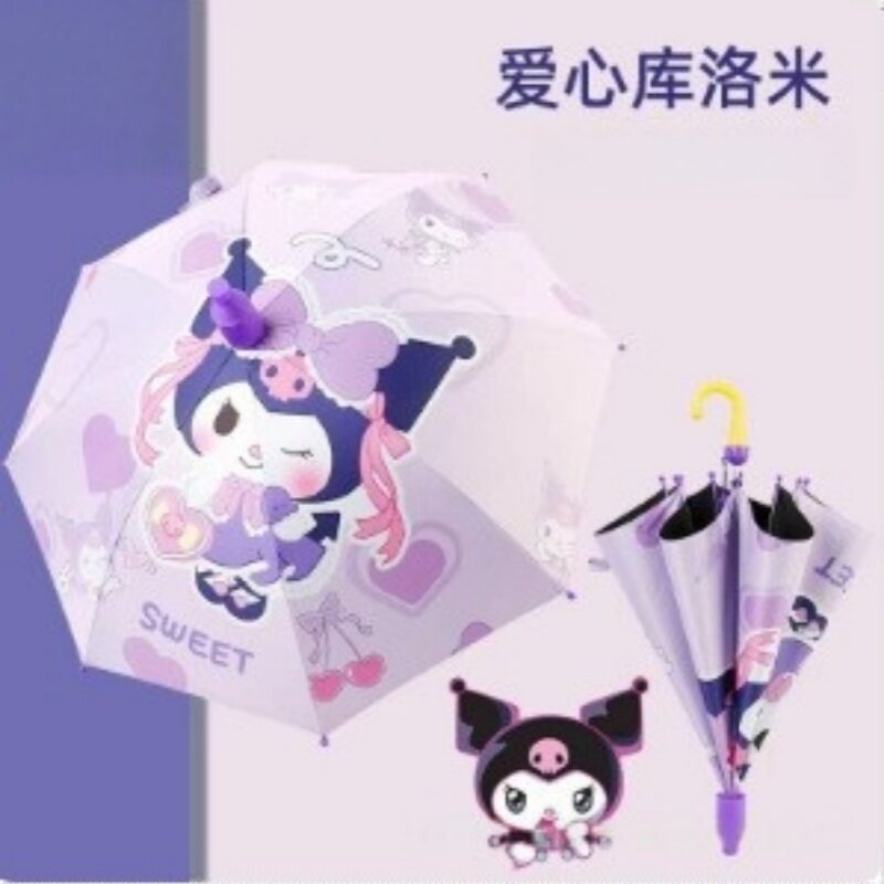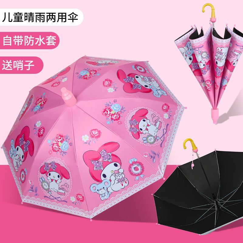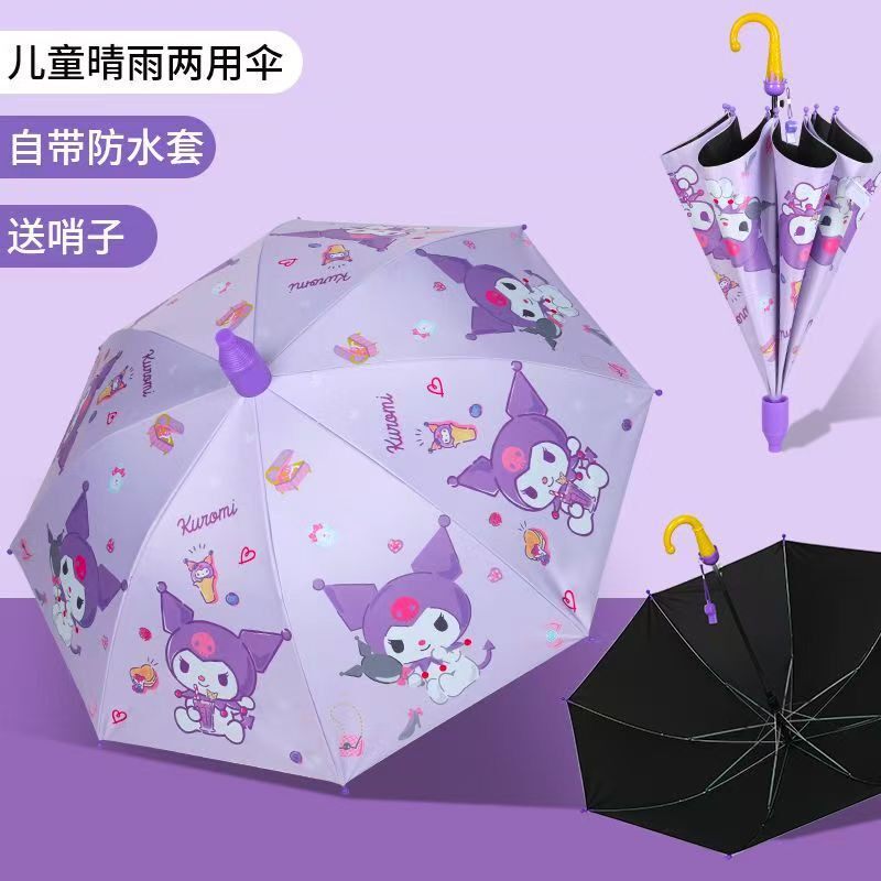 库洛米儿童半自动黑胶学生轻便晴雨伞防水套男女防晒公主长柄伞