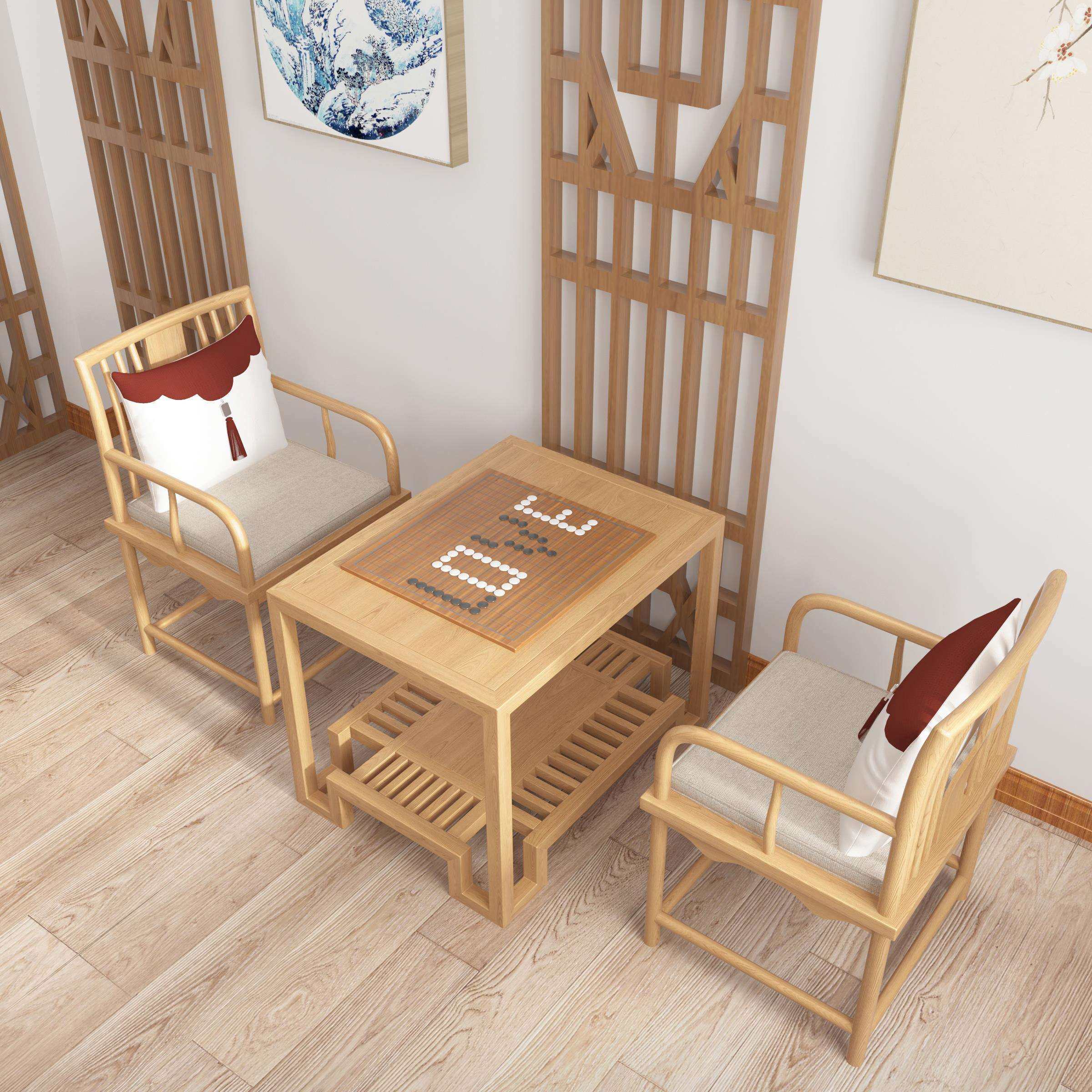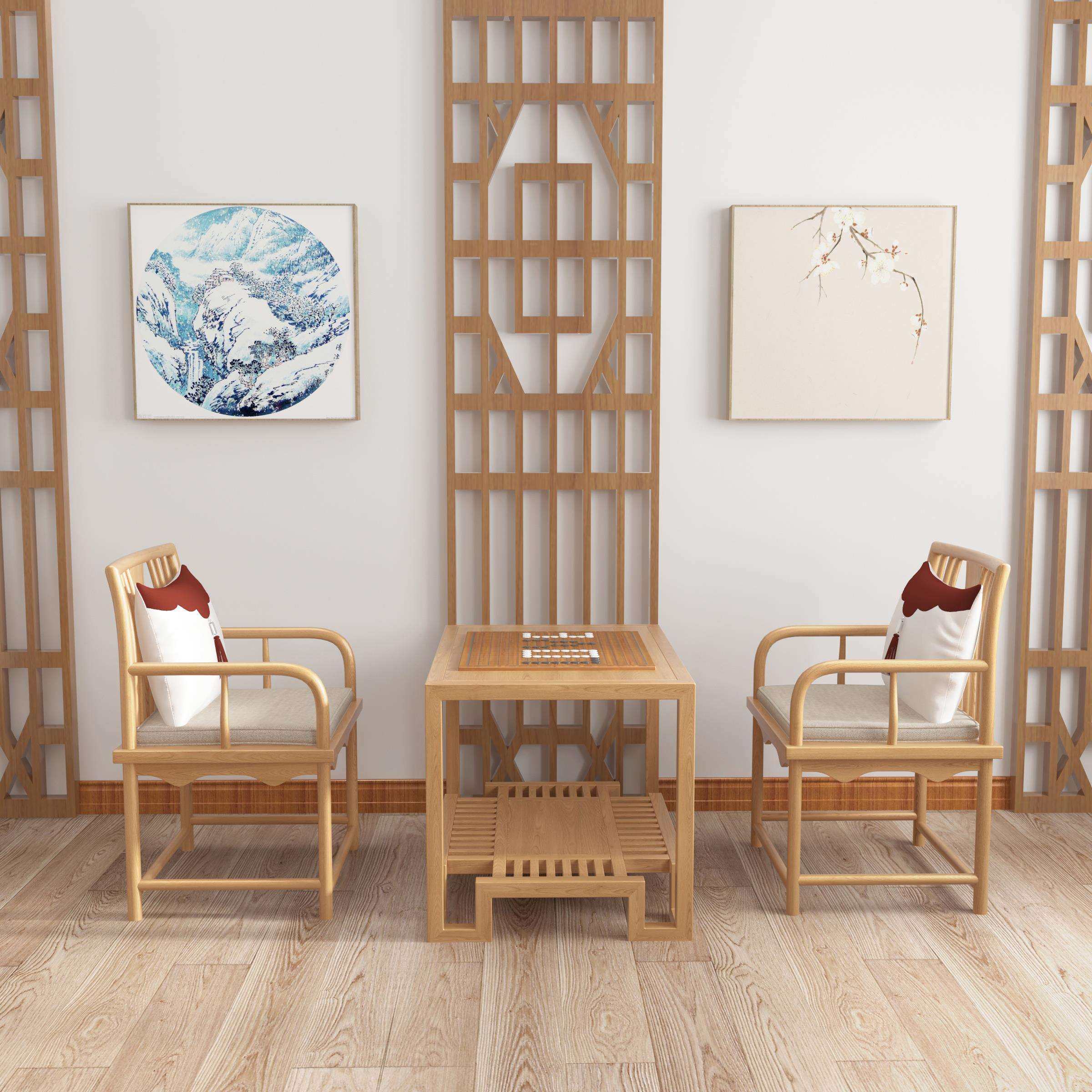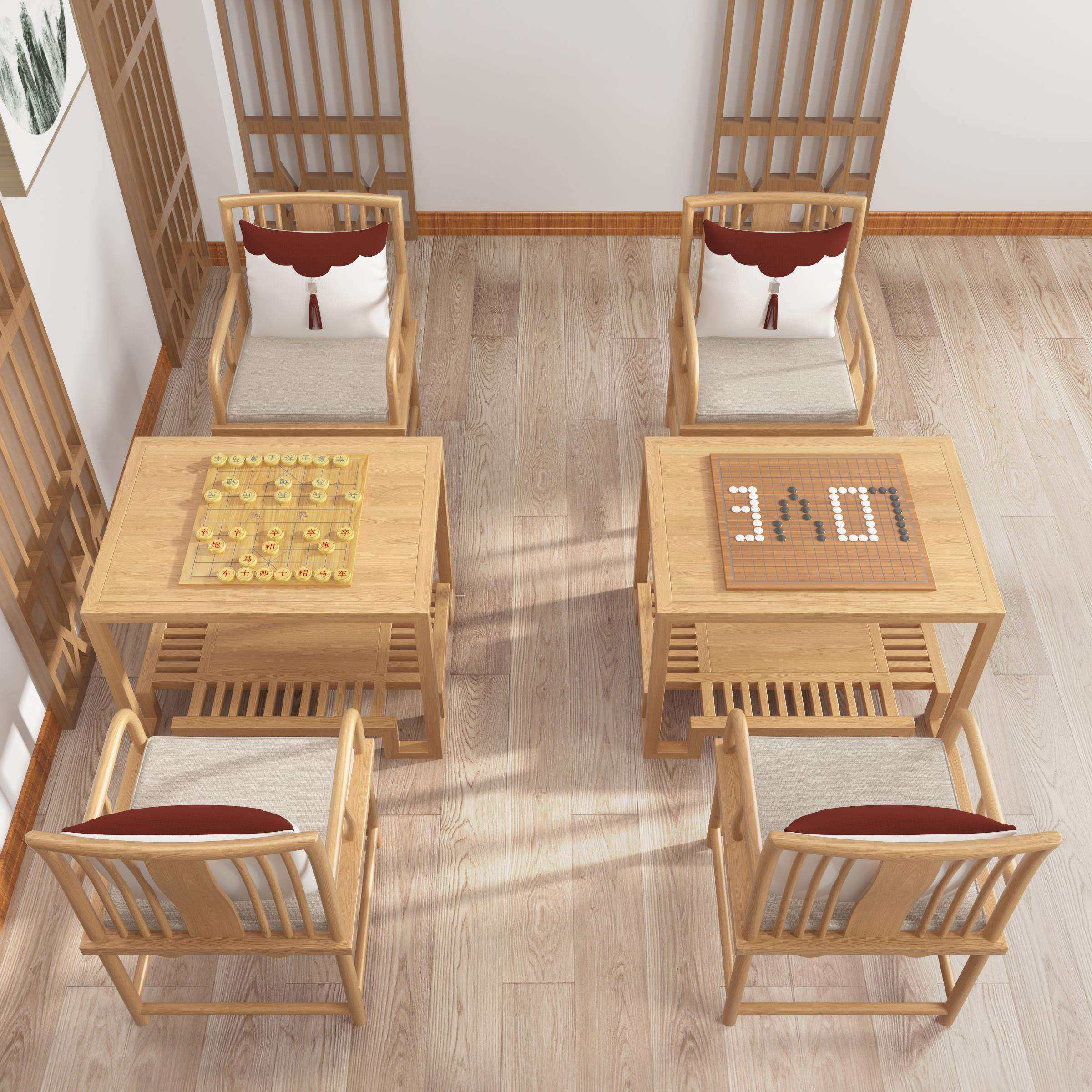 #新中式实木棋桌椅组合国学馆日式馆围棋中国象棋两用桌椅家用现