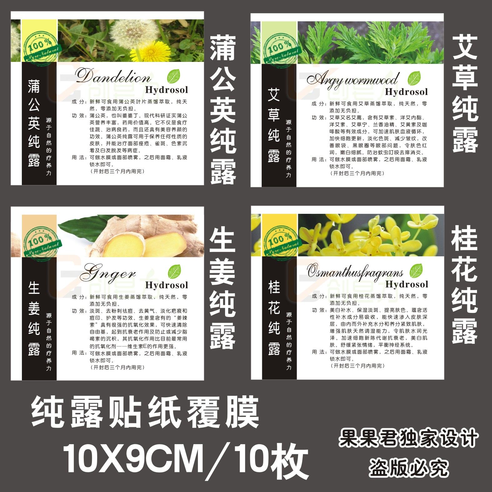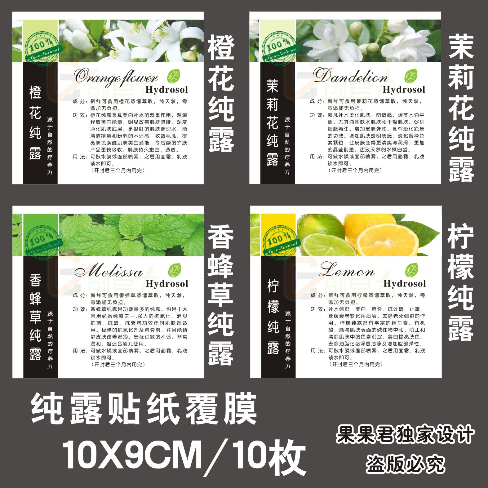 创皂力10枚10x9cm纯露贴纸手工皂不干胶纯露标签定做精油皂贴纸