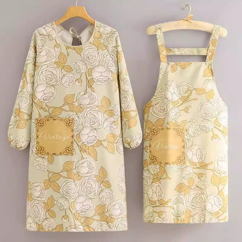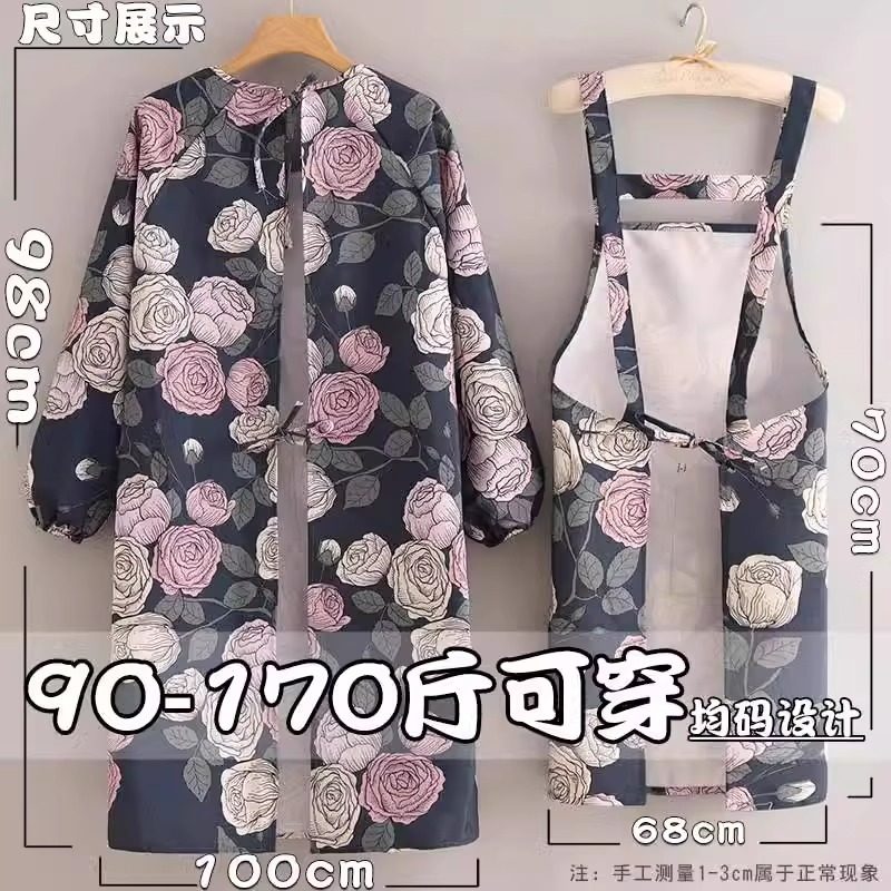 新款棉布耐磨围裙长袖厨房家用防污罩衣透气围腰做饭上班工作服女