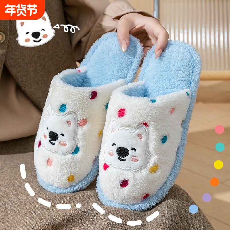 狗狗卡通趣味毛毛居家鞋棉拖鞋女秋冬学生可爱月子鞋蓝色防滑红色