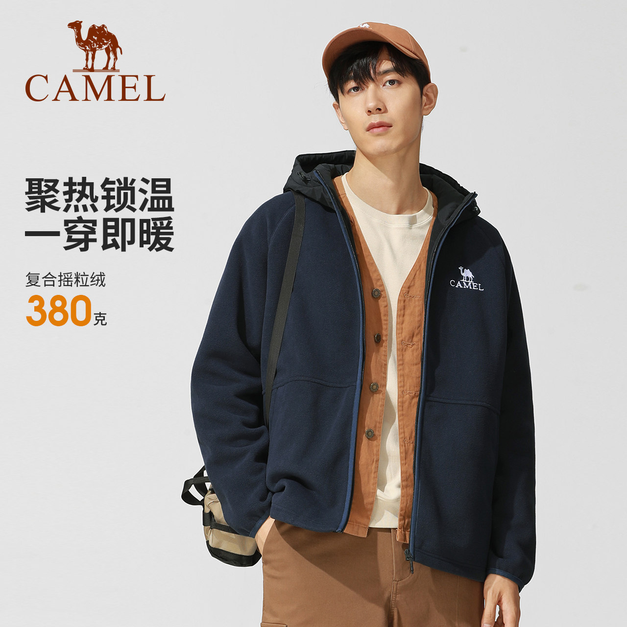 骆驼男装卫衣男连帽春秋加厚保暖宽松连帽开衫拉链摇粒绒时尚外套