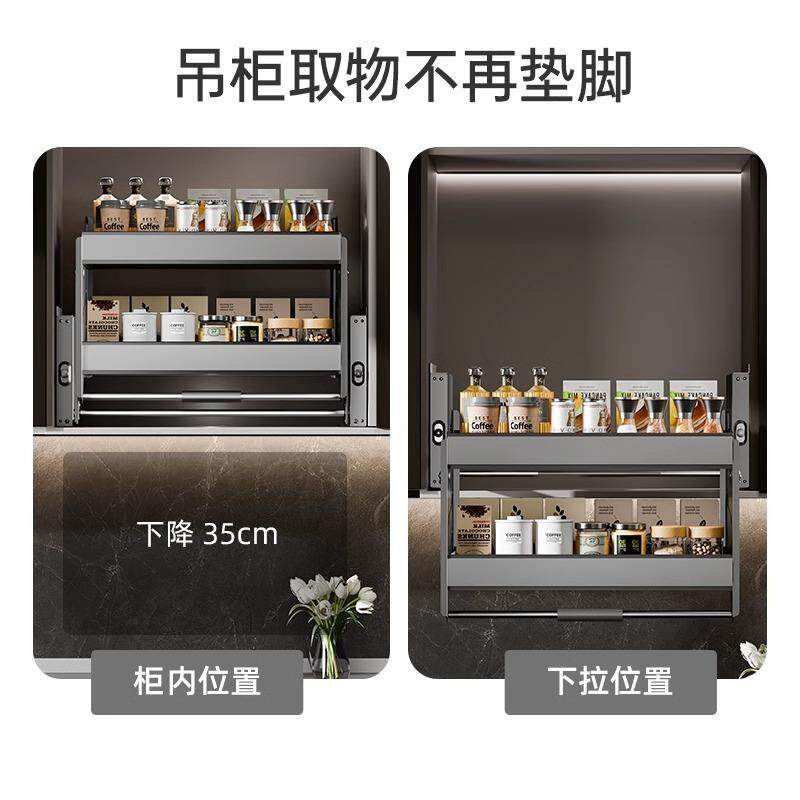 【大牌平替】意铂尼厨房吊柜升降拉篮橱柜缓冲双开门下拉式收纳得