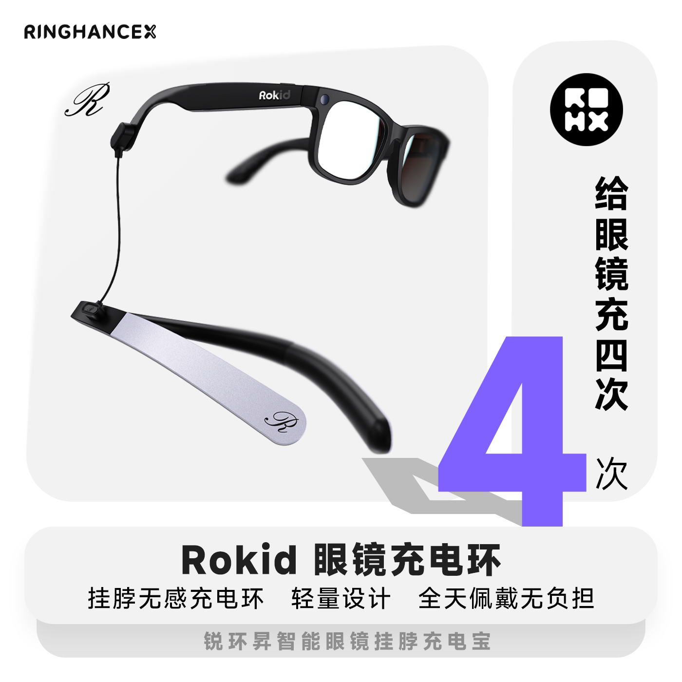 智能眼镜挂脖充电宝 | 挂脖充电环 磁吸兼容ROKID 全天佩戴无负担