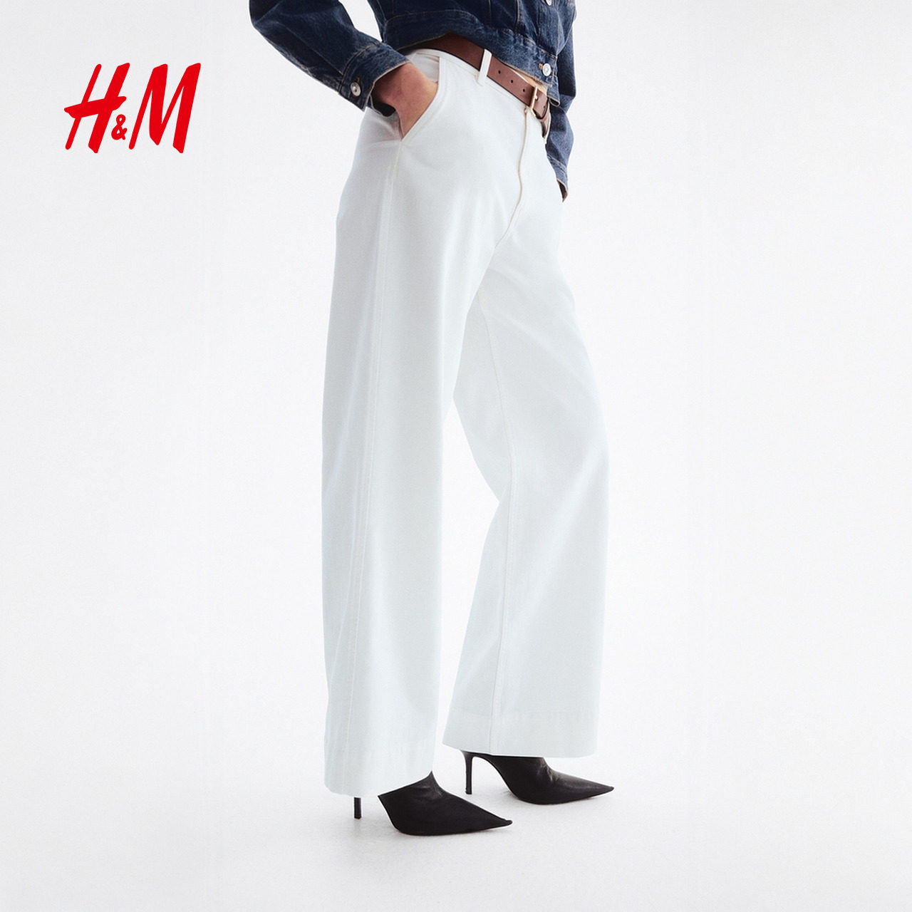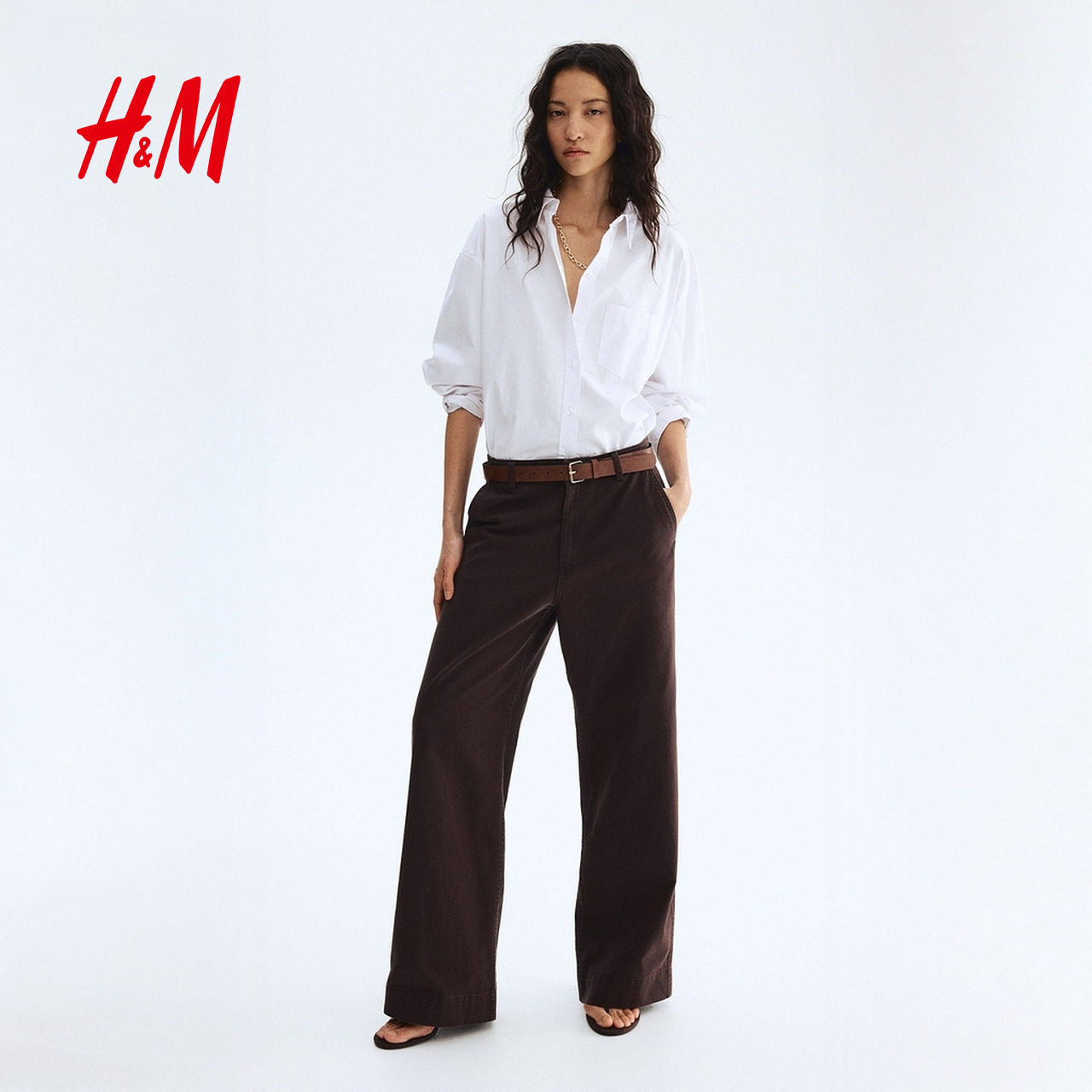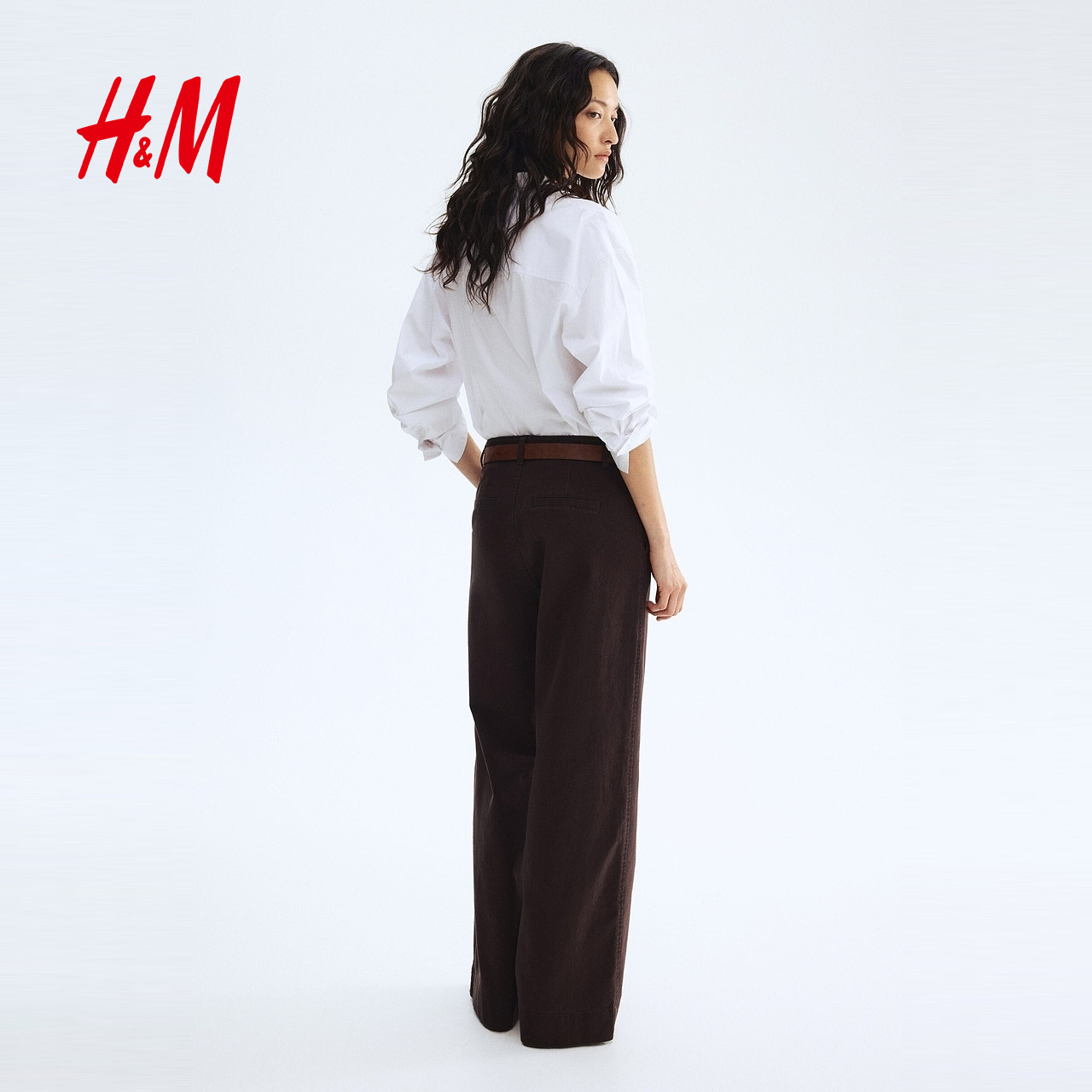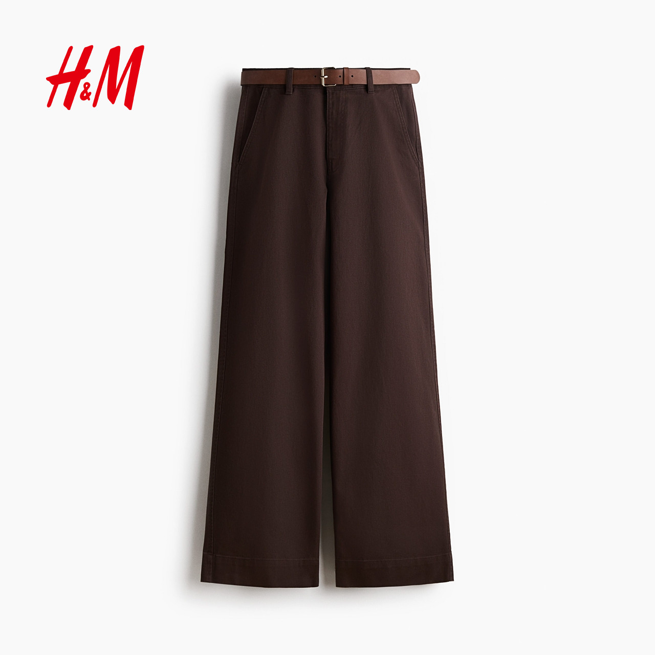HM2026春季新款女装配腰带斜纹布阔腿裤1322392