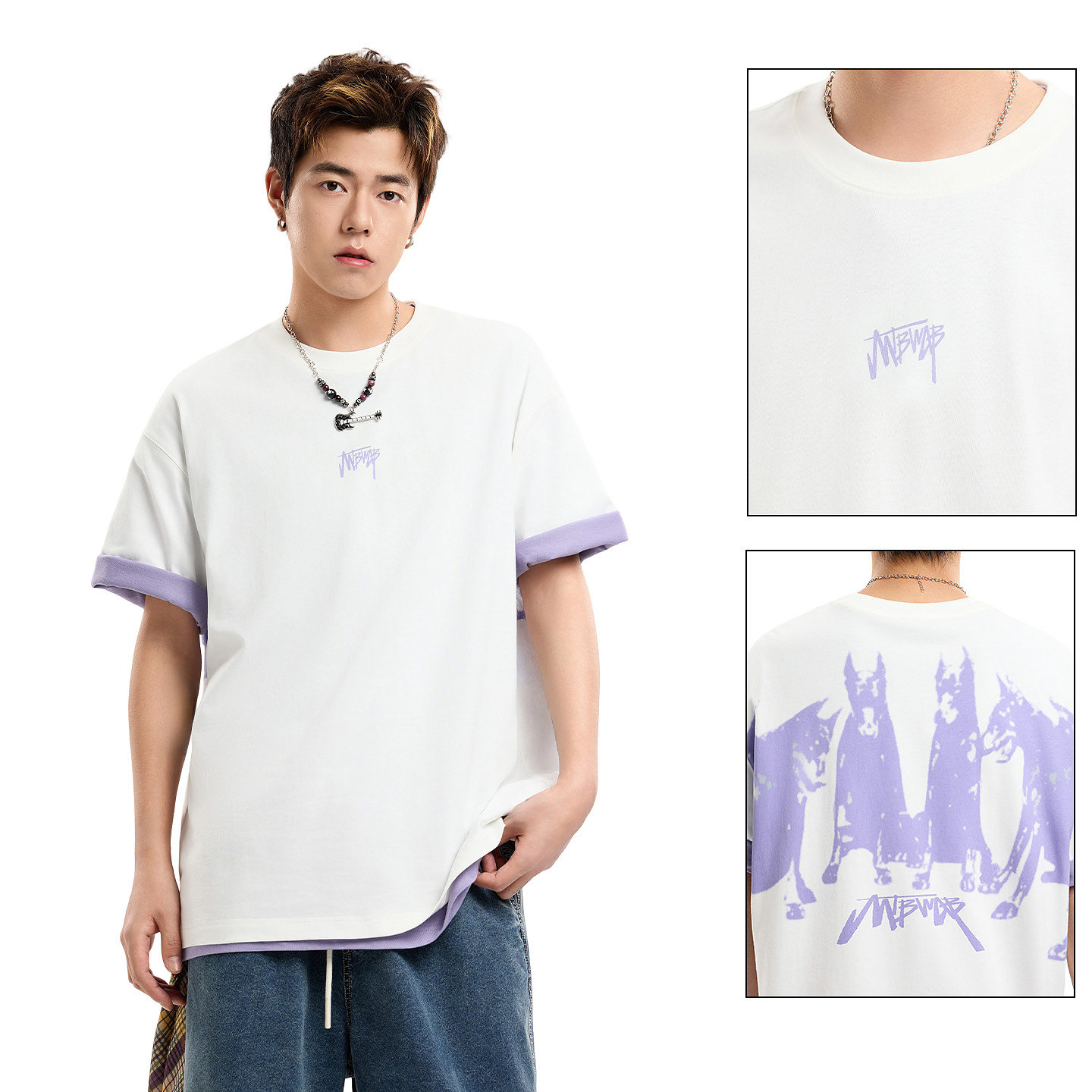 小尼力重磅纯色打底衫纯棉oversize白色短袖T恤男夏季体恤上衣服