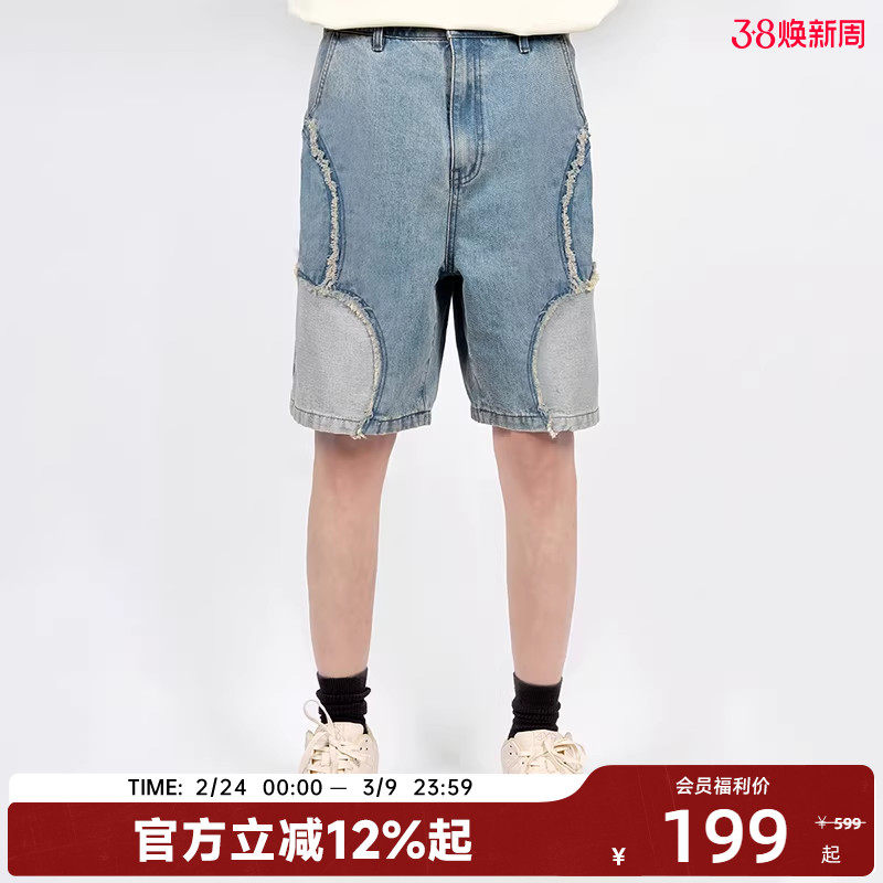 【陈伟霆】CANOTWAIT_BITEYOU拼接牛仔裤夏季短裤休闲宽松男女款