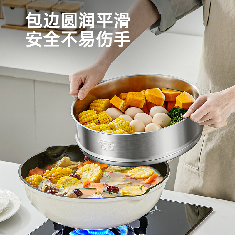 炊大皇蒸笼304不锈钢蒸格蒸锅小奶锅蒸笼蒸屉家用圆形蒸馒头蒸架