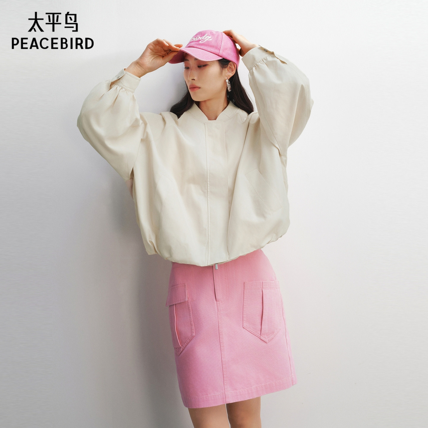 【商场同款】太平鸟棒球服外套字母刺绣廓形花苞外衣女A3BBG1347