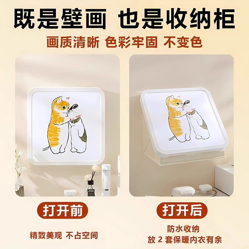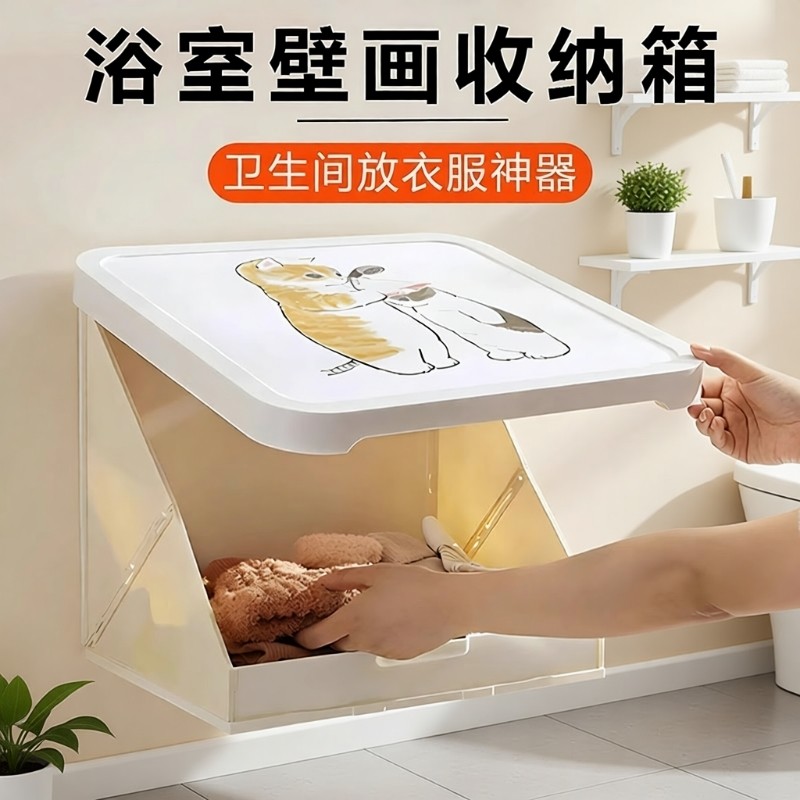 浴室壁画收纳箱洗澡防水置物架折叠挂画墙柜子盒卫生间放衣服神器