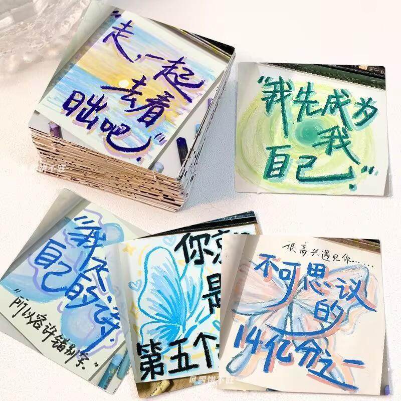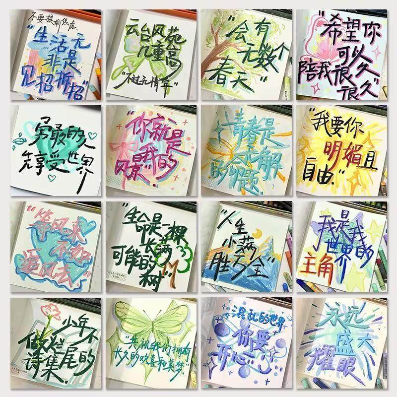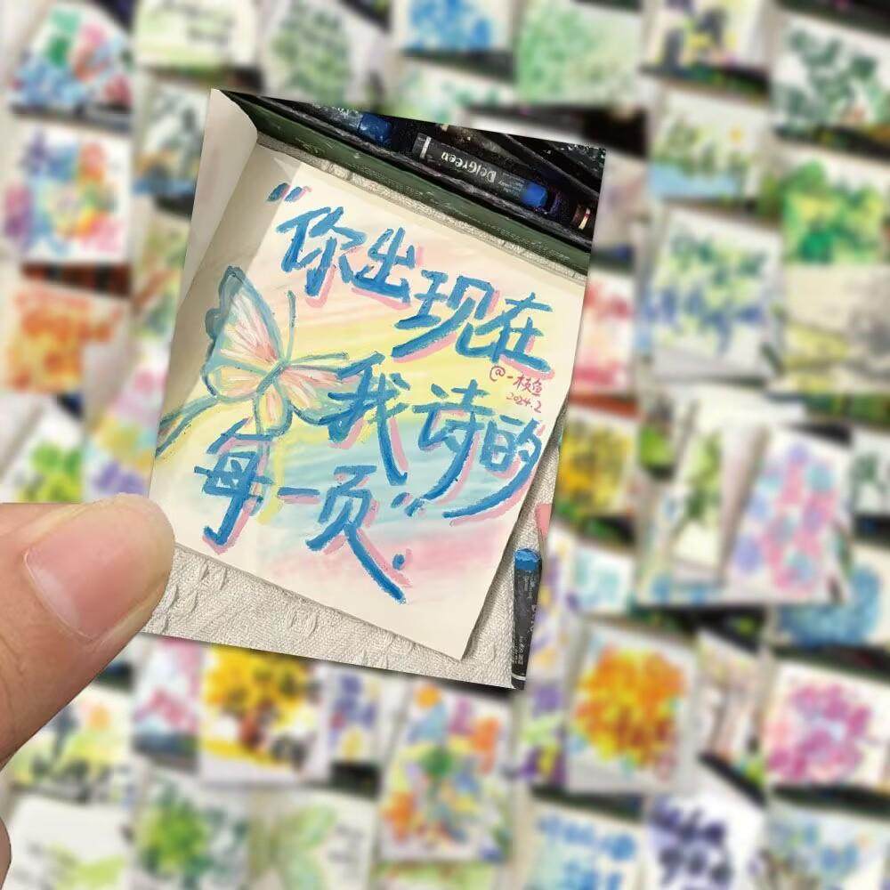 140张治愈语录文字贴纸手帐可爱励志唯美水彩素材学生高颜值INS风