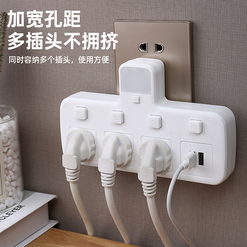 家用纯铜插座转换器独立开关多孔插头扩展电源大功率排插夜灯USB
