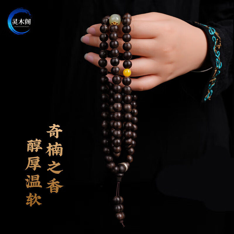 天然奇楠沉香手串108颗木质佛珠男女文玩十二生肖本命佛马年手链