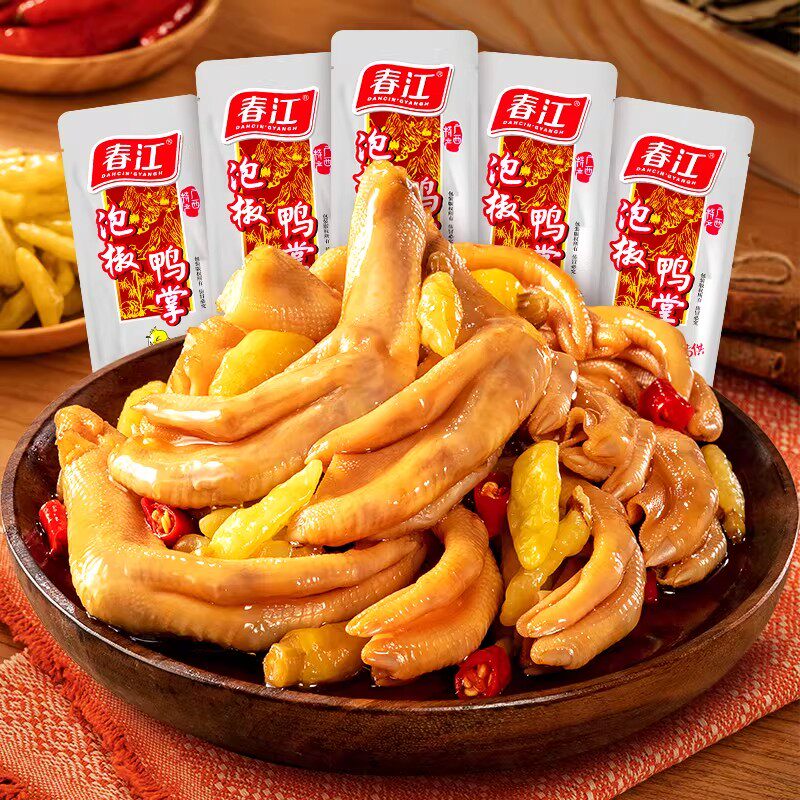 春江鸭爪泡椒广西特产大鸭掌香辣网红零食开袋即食解馋鸭货