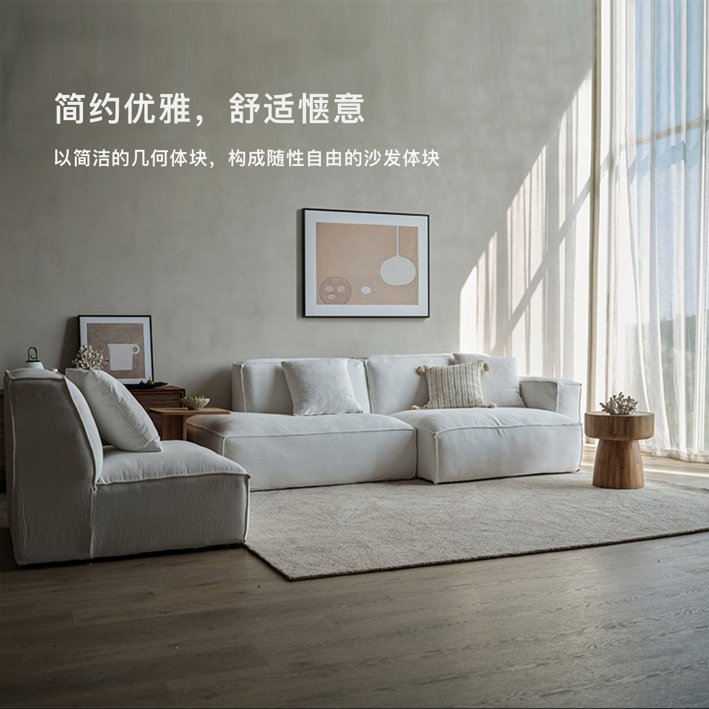MountainLiving客厅家具棉麻布艺沙发云朵豆腐块高端品牌白色中古