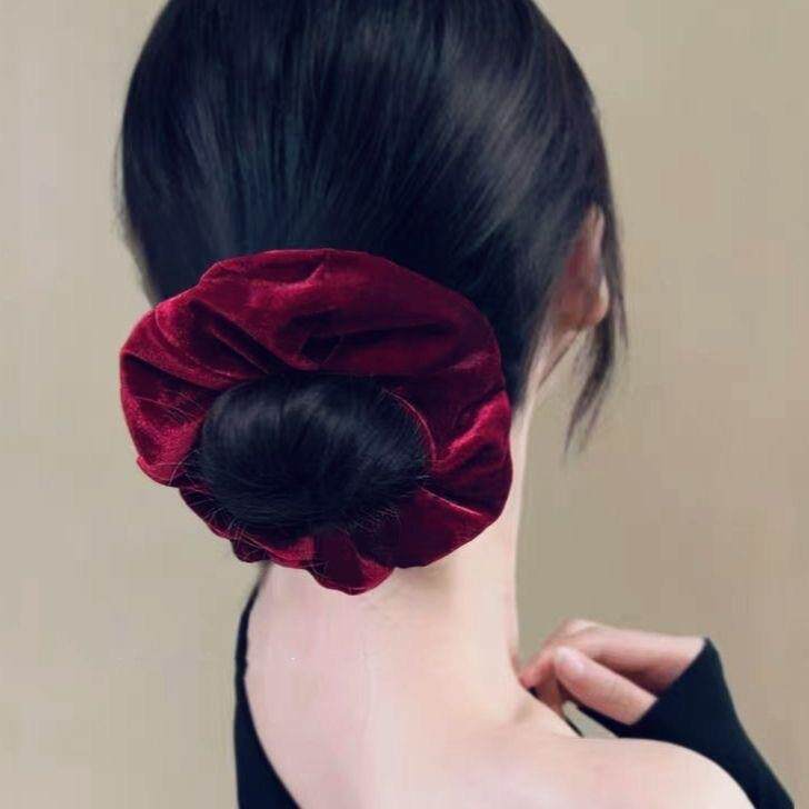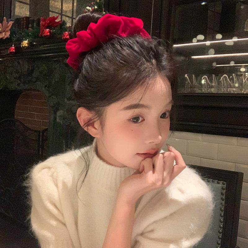 手作大肠发圈原创设计发圈复古红色圣诞新年红色皮筋气质发绳