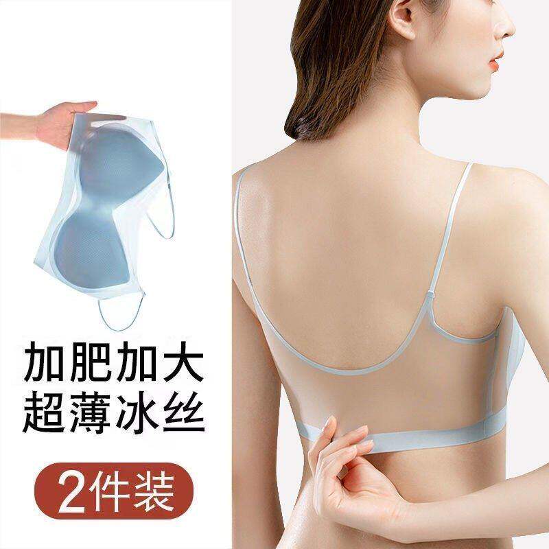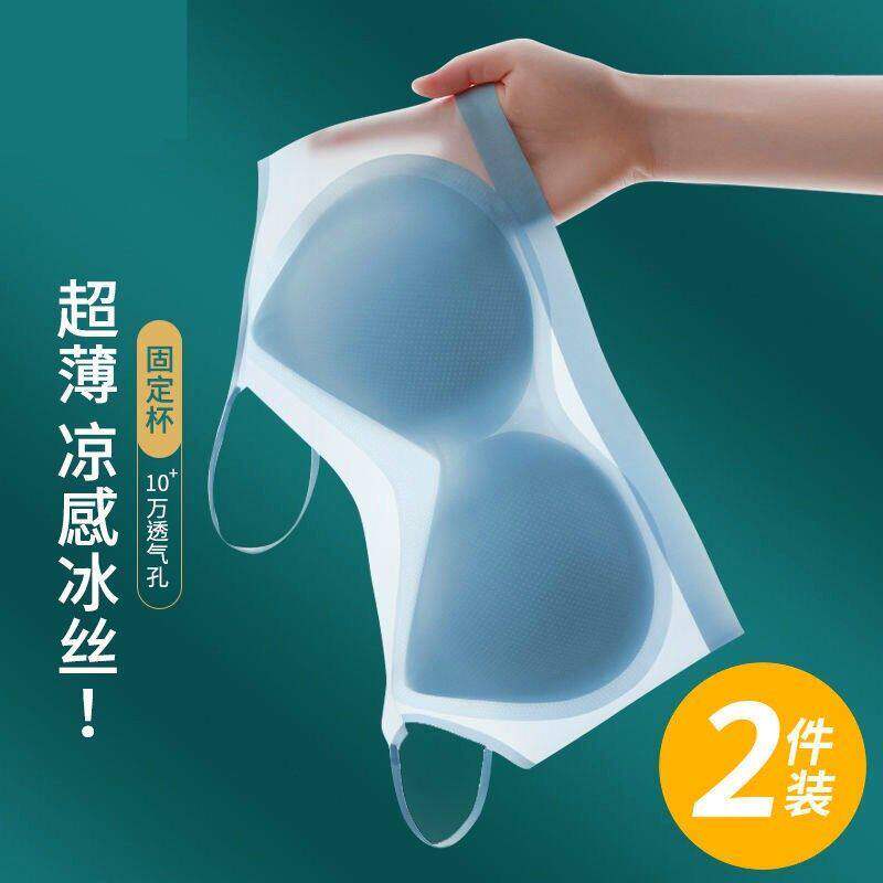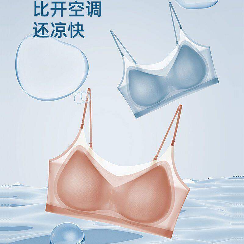 细肩带无痕内衣女聚拢小胸一体式冰丝凉感抹胸背心文胸超薄无钢圈