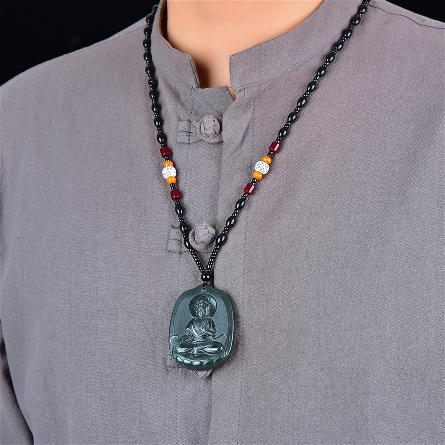 送证书天然新疆和田玉青玉挂件南海观音菩萨玉石吊坠男款玉佩8870