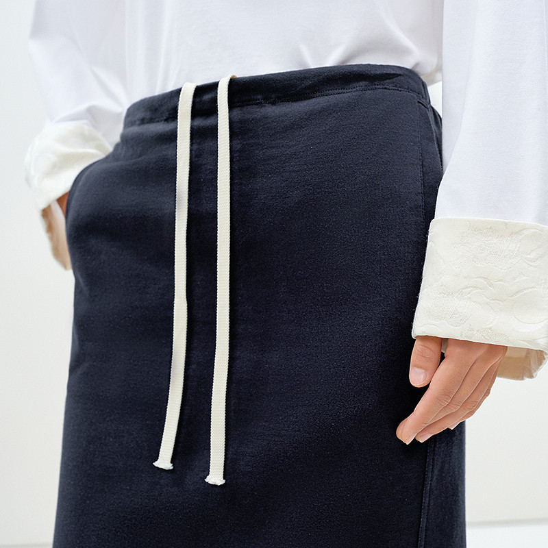 森马半身裙女夏季松紧腰肌理垂感分割A字裙宽松松弛感山本风长裙