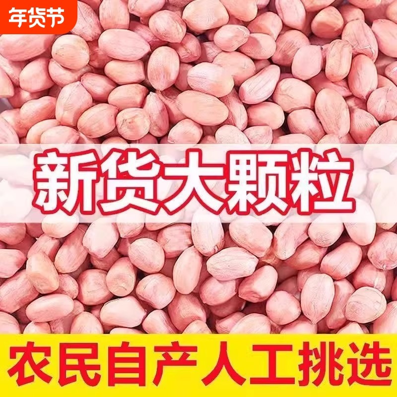 新鲜红皮带壳生花生四粒红花生米农家自种晒干货高产花生红皮花生